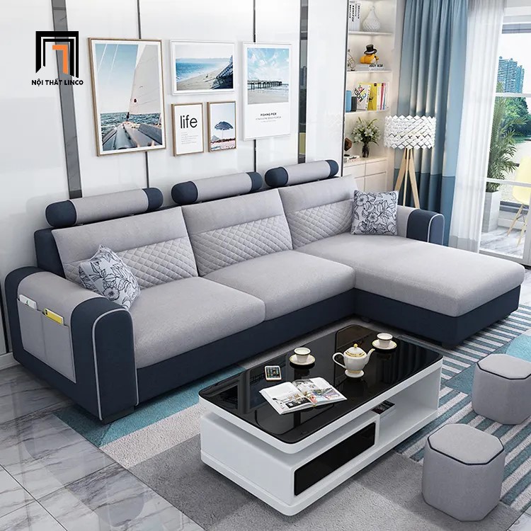 A1 Bộ ghế sofa góc L đẹp GT86 Jiangsu 2m4 x 1m6 phối màu vải nỉ