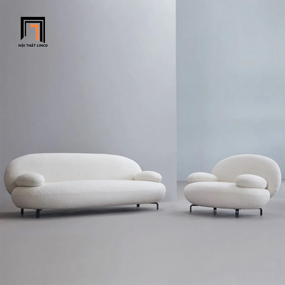 B1 Bộ ghế sofa xinh xắn màu trắng kem KT56 Nina kiểu dáng cong