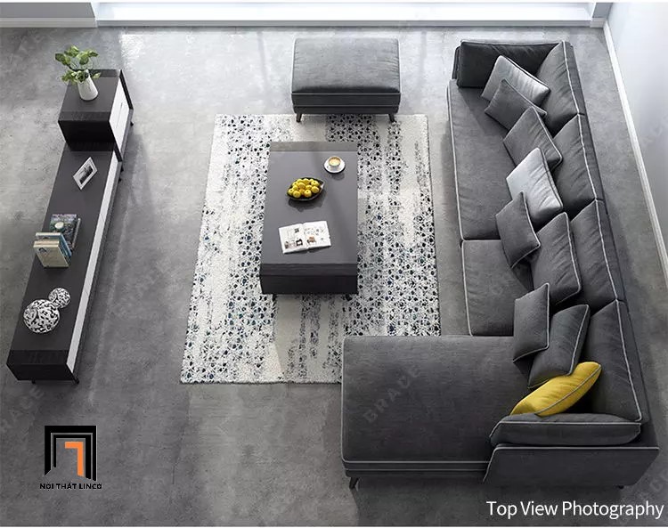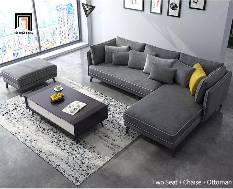 B1 Ghế sofa góc chữ L xám đậm GT21 Grace 3m1 x 1m6 phòng khách