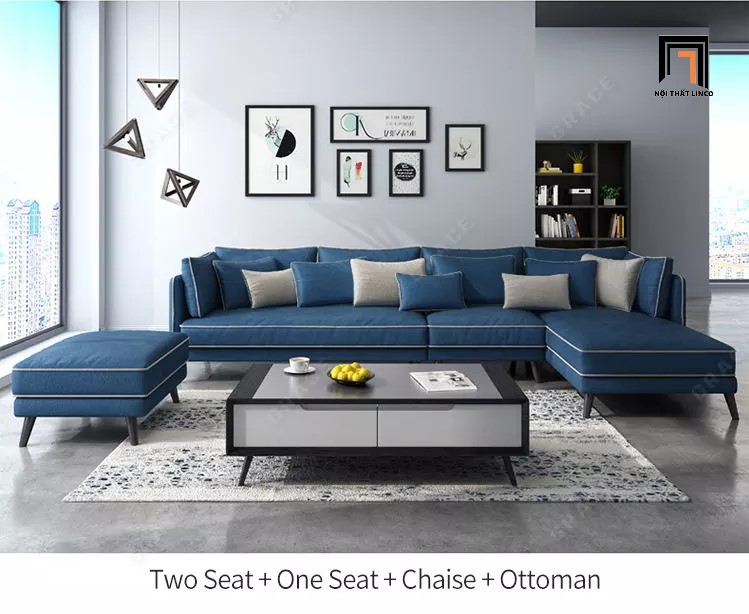 + 2m5 x 1m6 giá 7700k, gồm 2 ghế sofa chính và các gối đi kèm