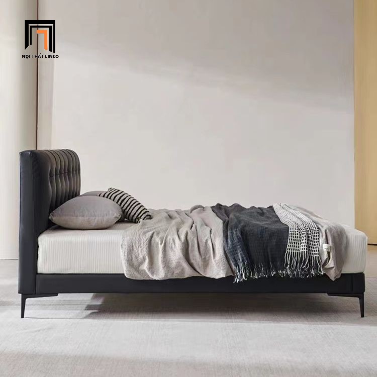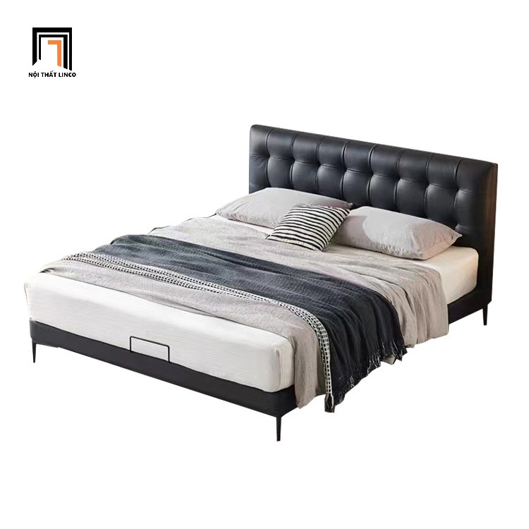 B1 Giường ngủ da Pu bóng màu đen GN79 Kirk giật lún sang trọng