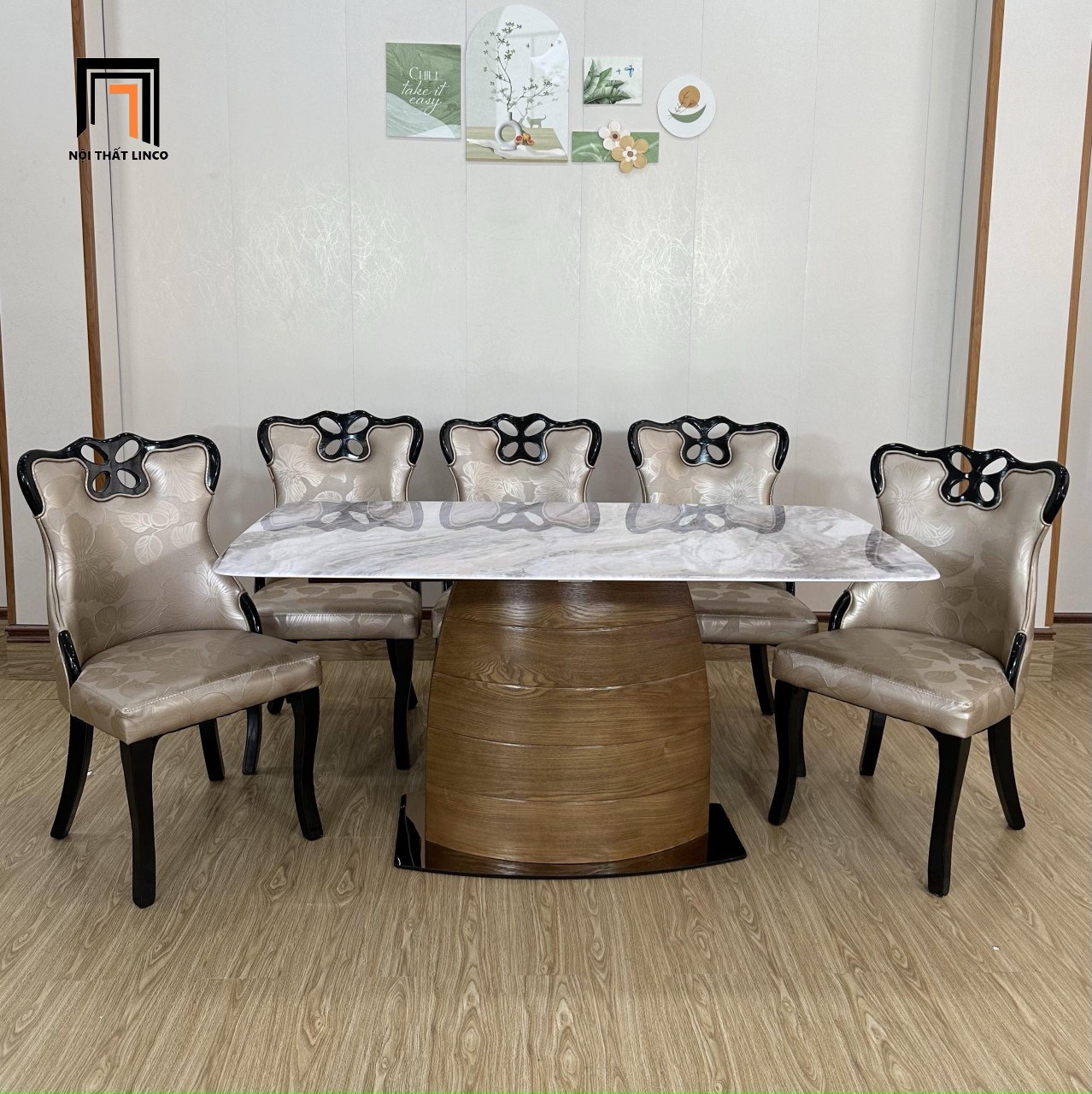 Bàn ghế ăn sang trọng GF27-BAD6-G323-B362 6 ghế da giả