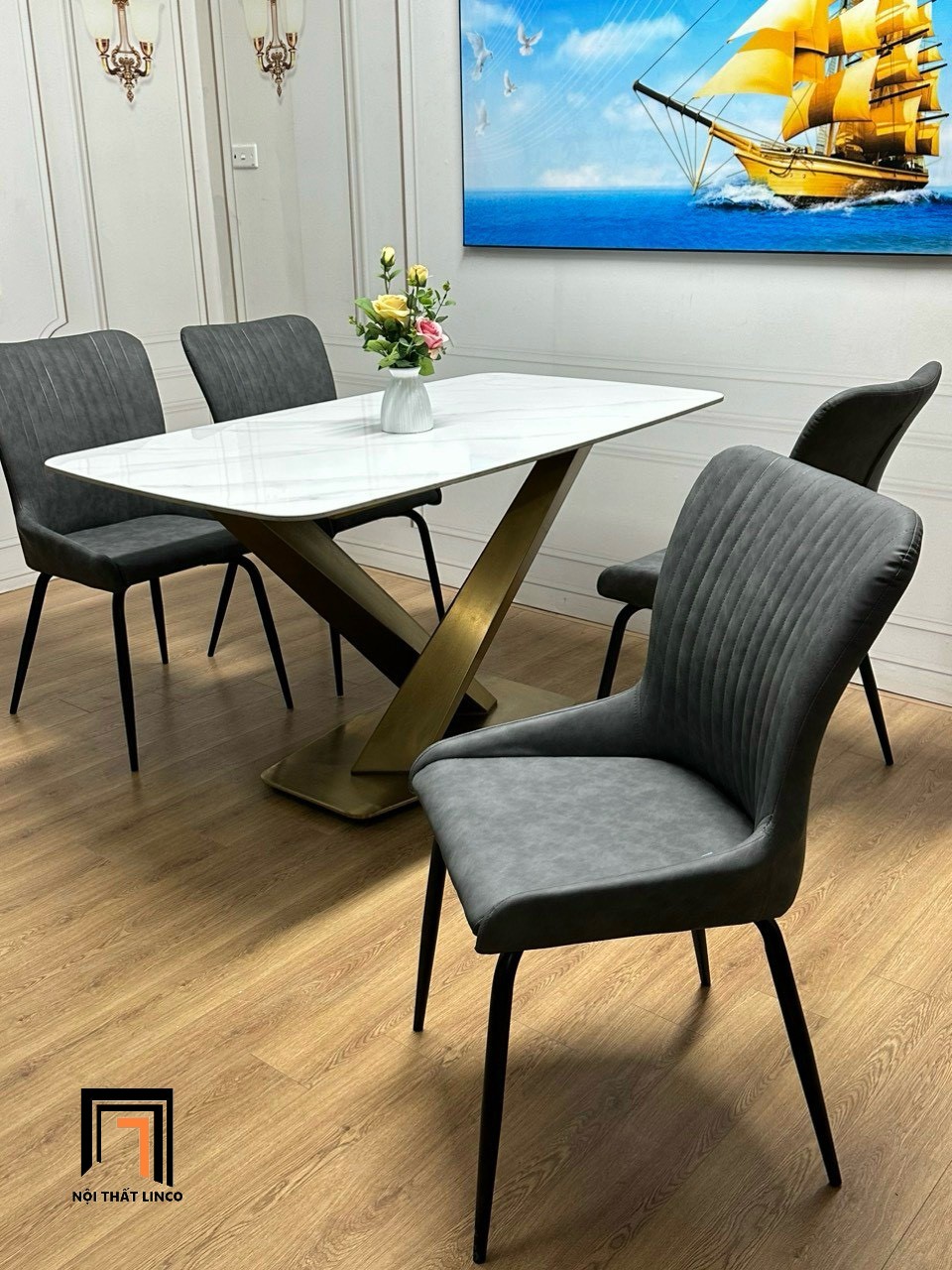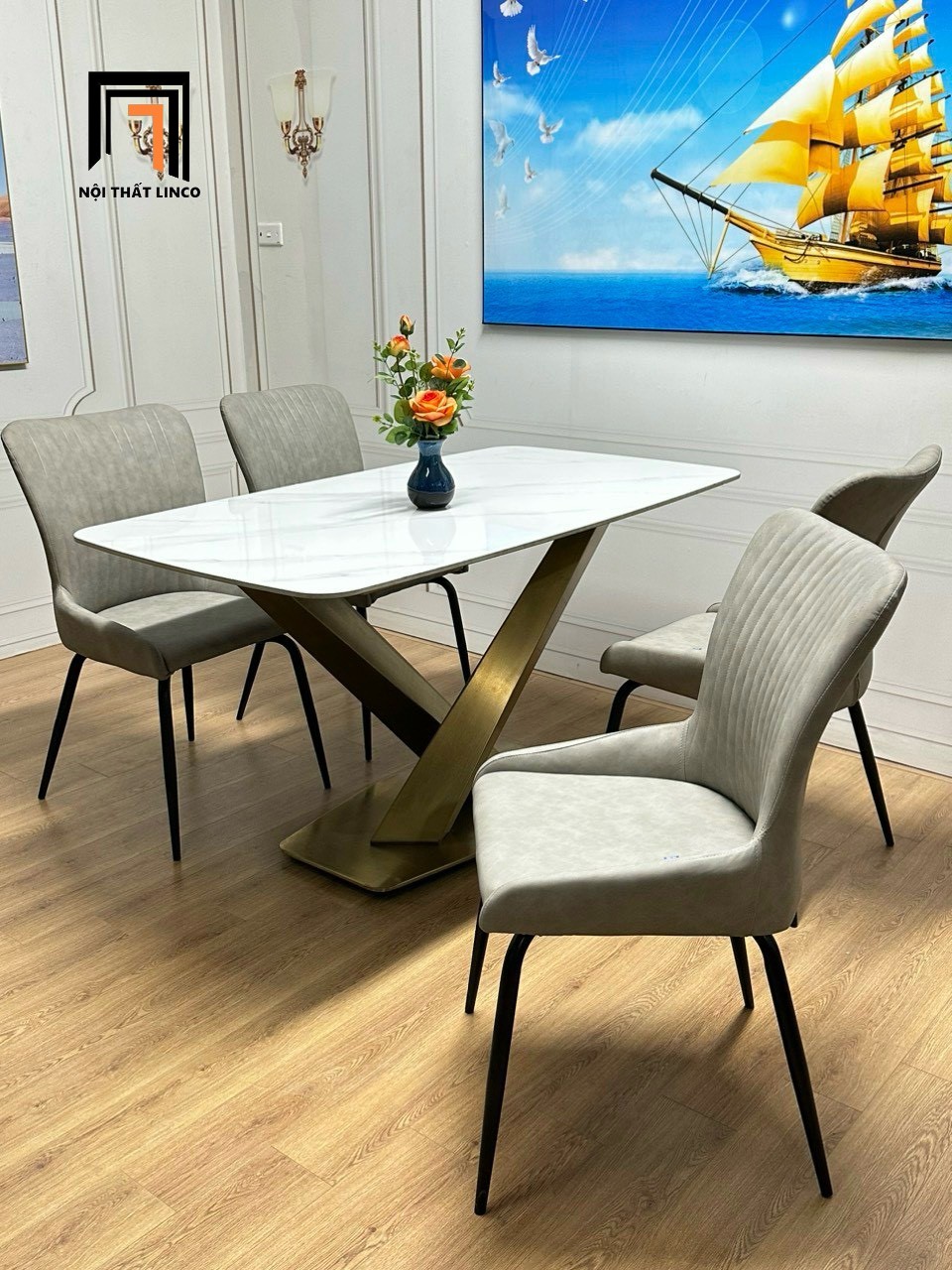 Bộ bàn ăn 4 ghế da giả 24-BAD4-G9-B70 chân inox cao cấp