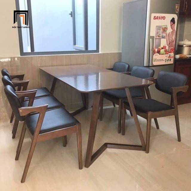 Bộ bàn ăn 6 ghế 15-KH6-G43-B92 mặt nệm da giả màu đen
