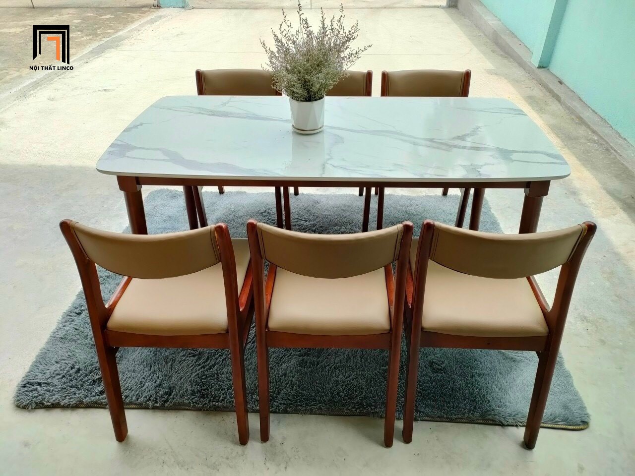 Bộ bàn ăn 6 ghế gia đình 18-KH6-G10-B110 nệm ngồi da giả