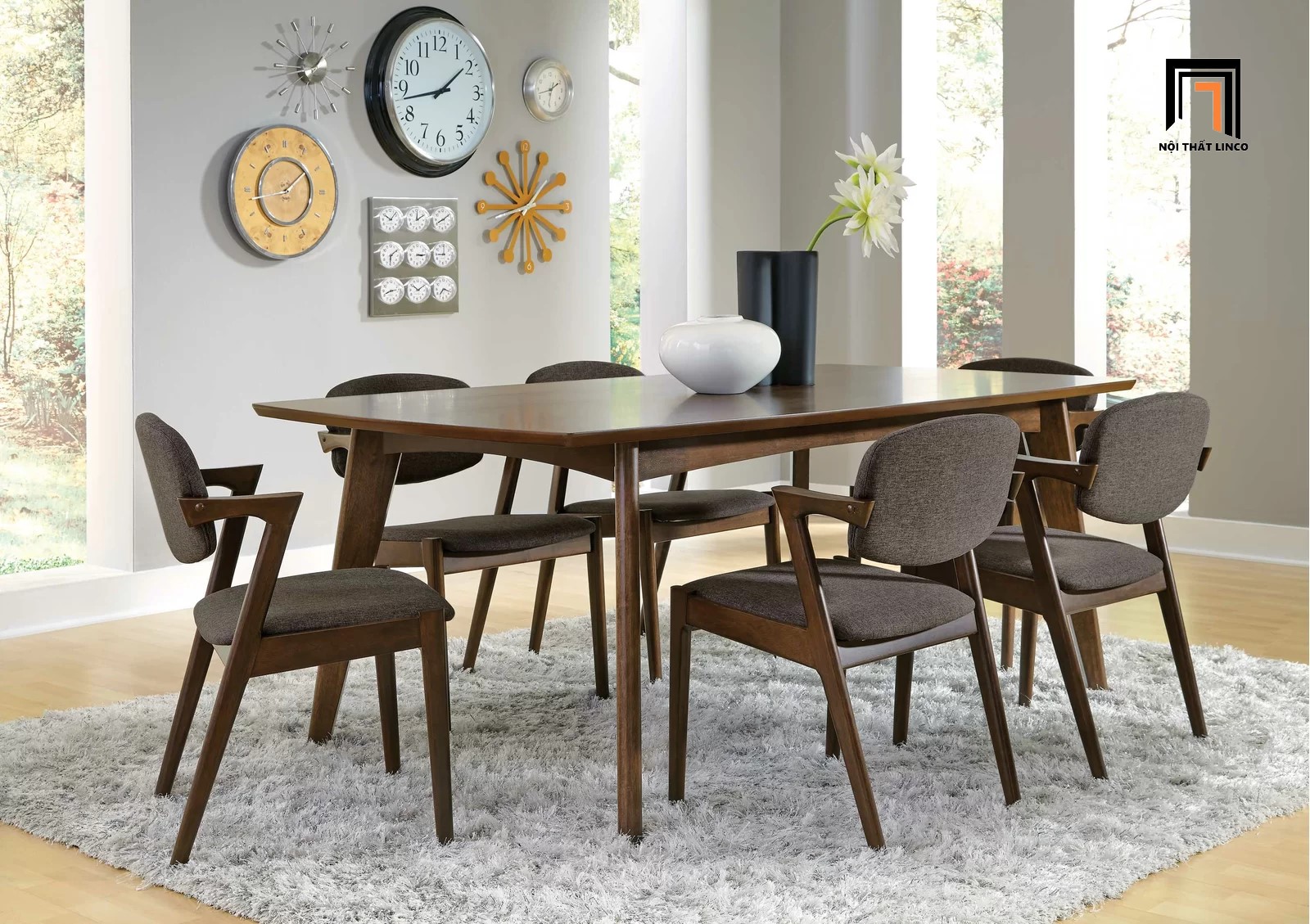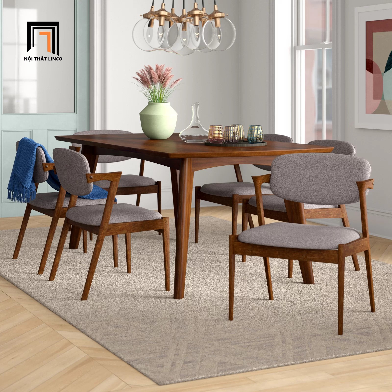 Bộ bàn ăn dài 1m6 32-KH6-G43-B108 6 ghế bọc nệm