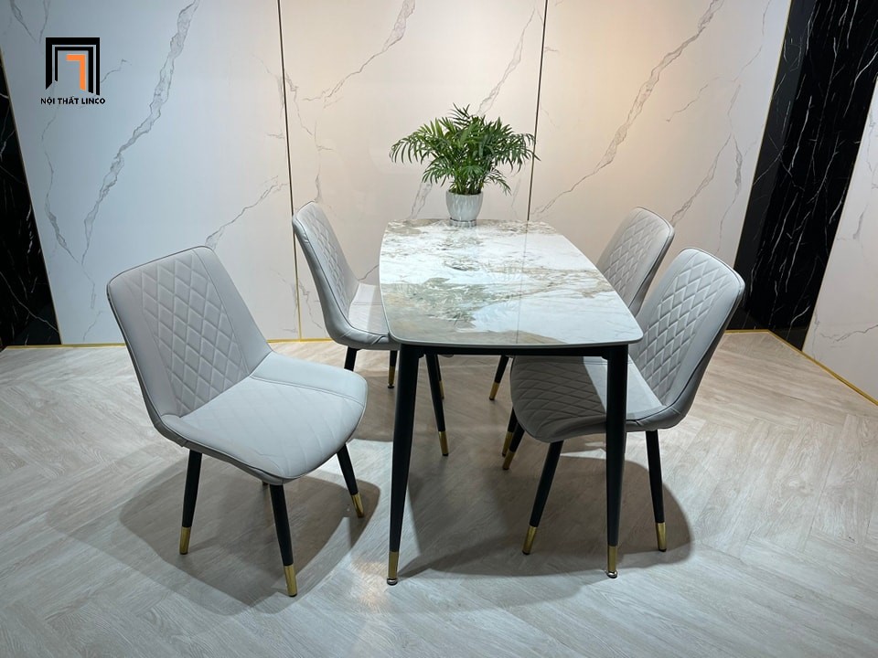 Bộ bàn ăn gia đình 16-BAD4-G4-B66 4 ghế da giả nhập khẩu