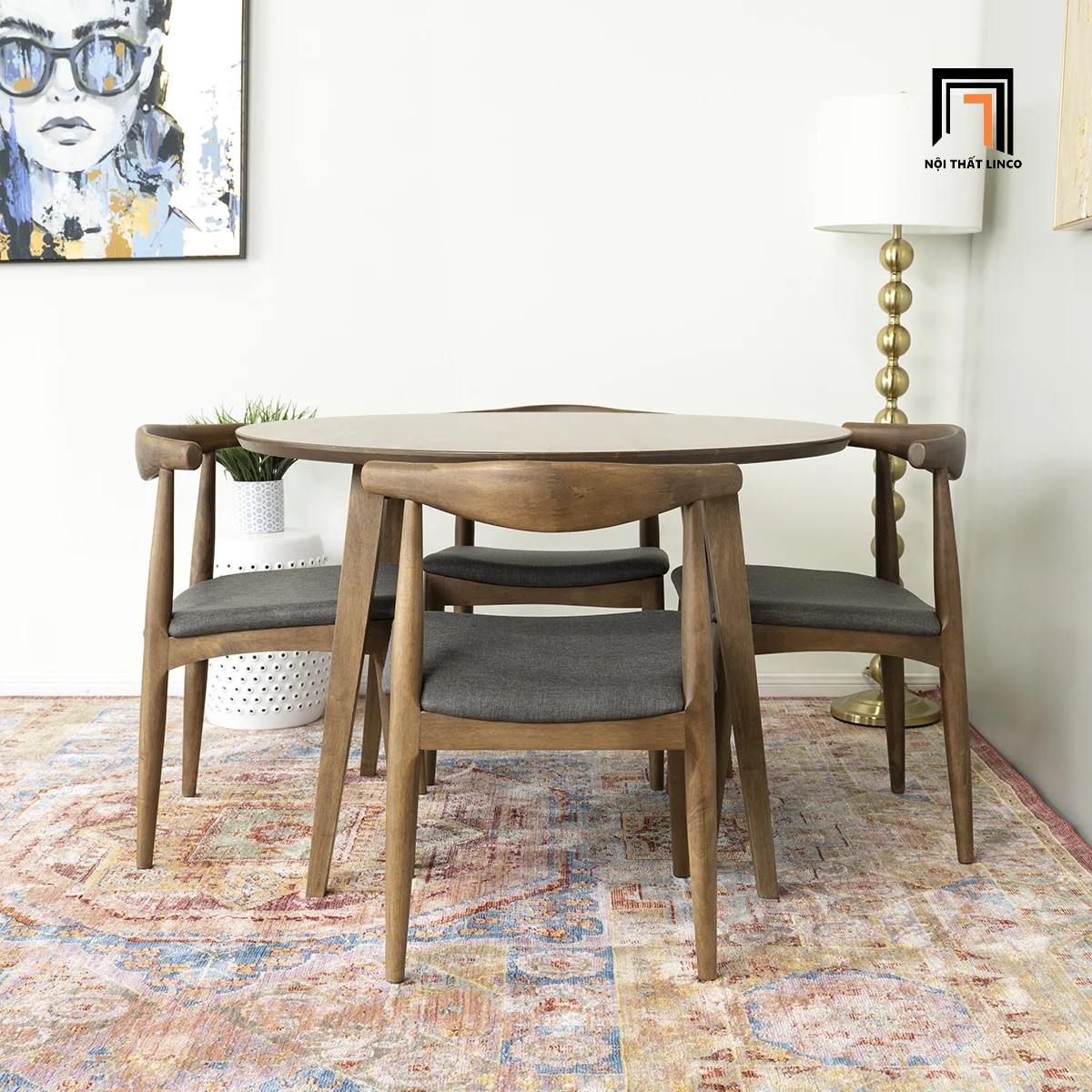 Bộ bàn ăn gỗ hình tròn giá rẻ 44-KH4-G12-B93 4 ghế ngồi nhỏ gọn