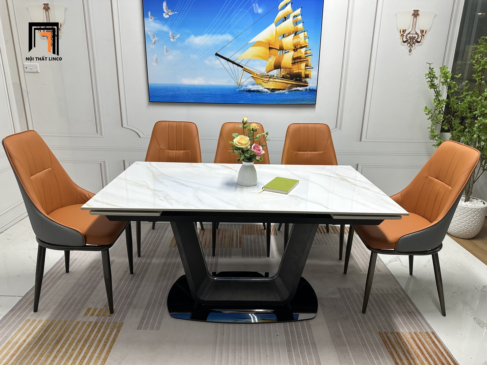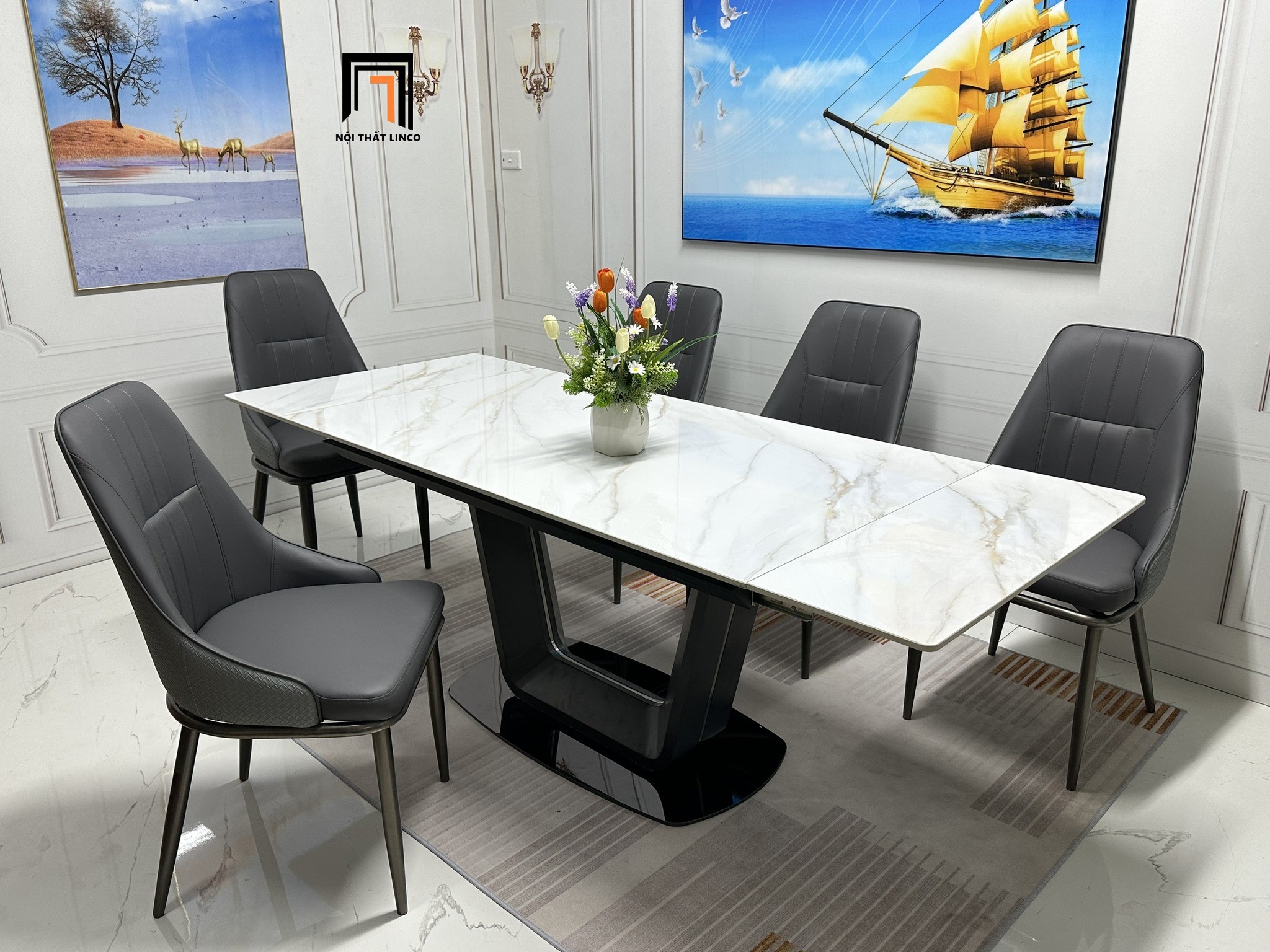 Bộ bàn ăn mặt đá ceramic 49-BAD6-G39-B85 1m4 kéo dài 2m