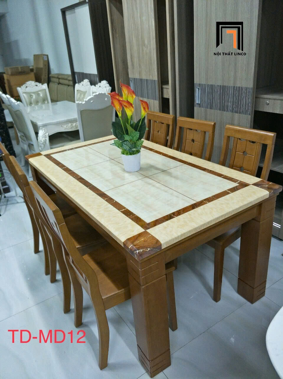 Bộ bàn ăn mặt đá GF17-BAD6-G308-B354 6 ghế gỗ giá rẻ