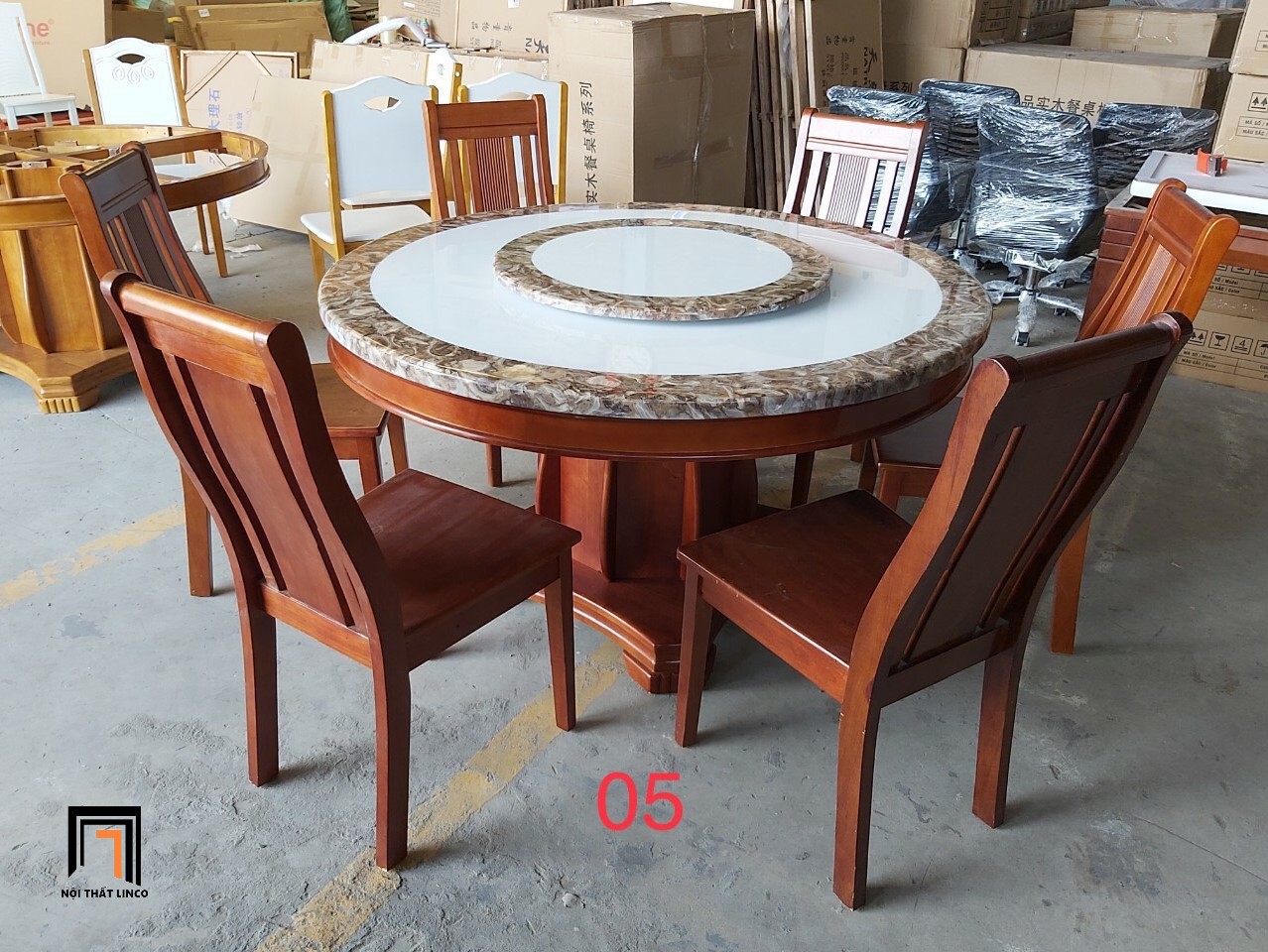 Bộ bàn ăn mặt đá tròn 1m3 GF36-BAD6-G300-B351 6 ghế gỗ