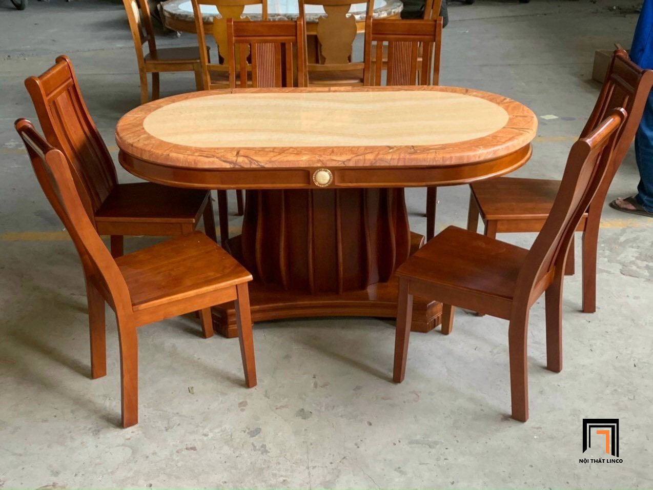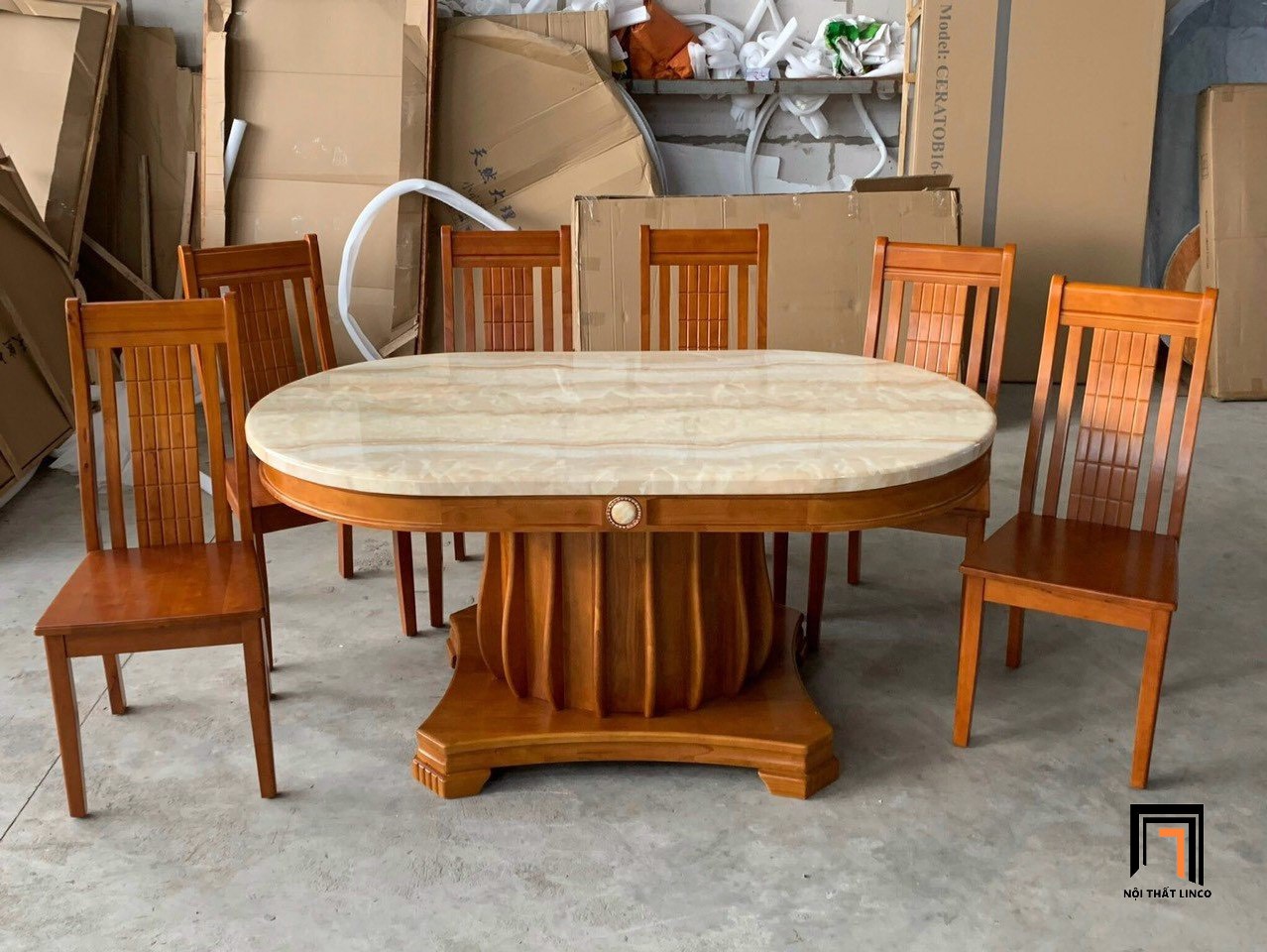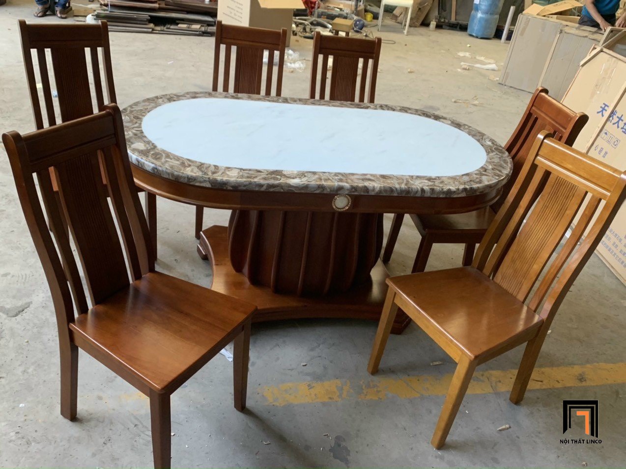 Bộ bàn ăn nhà bếp oval GF23-BAD6-G300-B358 mặt đá dày