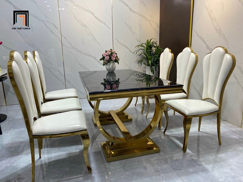 Bộ bàn ăn sang trọng 27-BAD6-G101-B20 mặt đá ceramic