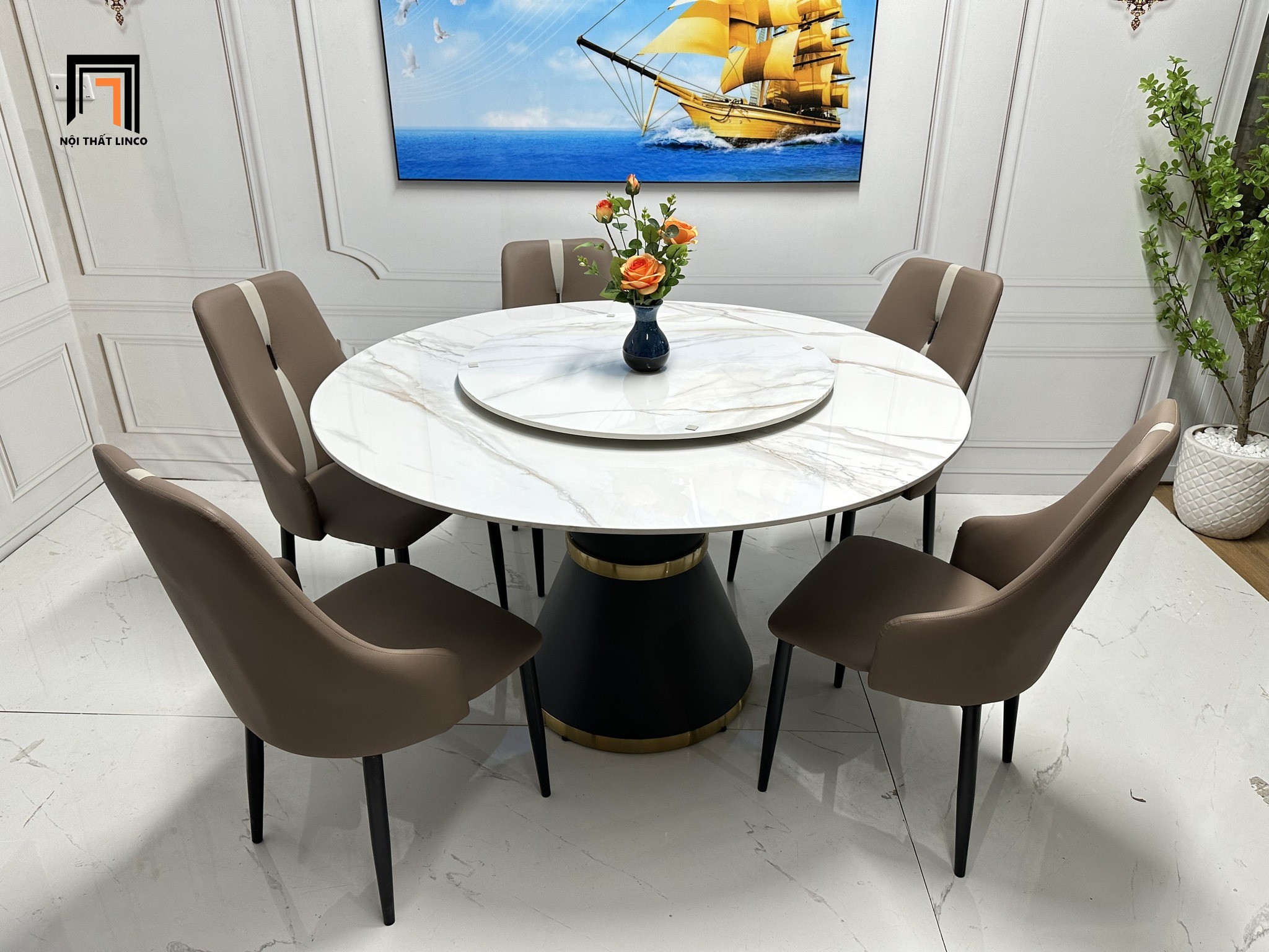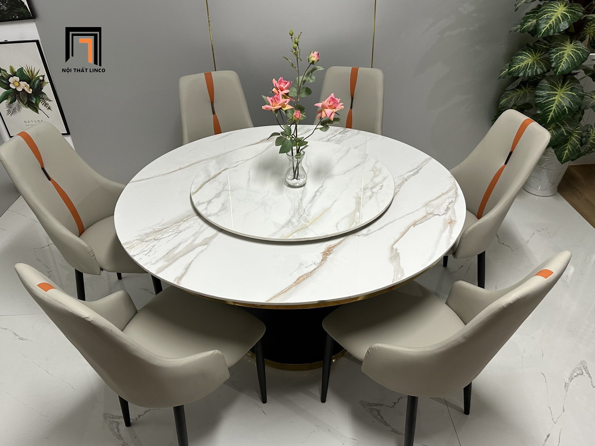 Bộ bàn ăn tròn 1m3 50-BAD6-GOCNew-B81 mặt đá xoay đẹp