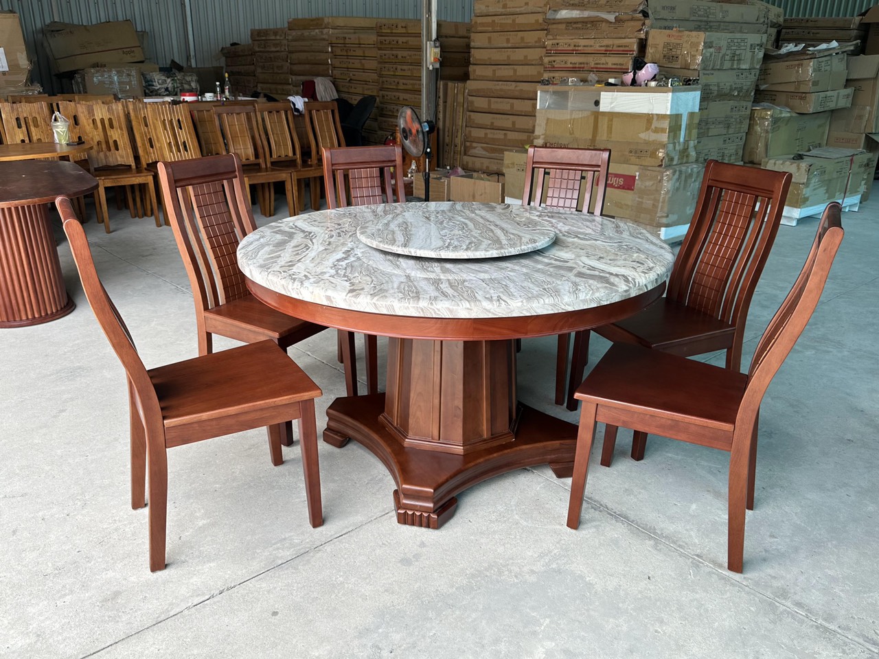 Bộ bàn ăn tròn mặt đá 1m3 GF1-BAD6-G301-B351 6 ghế gỗ