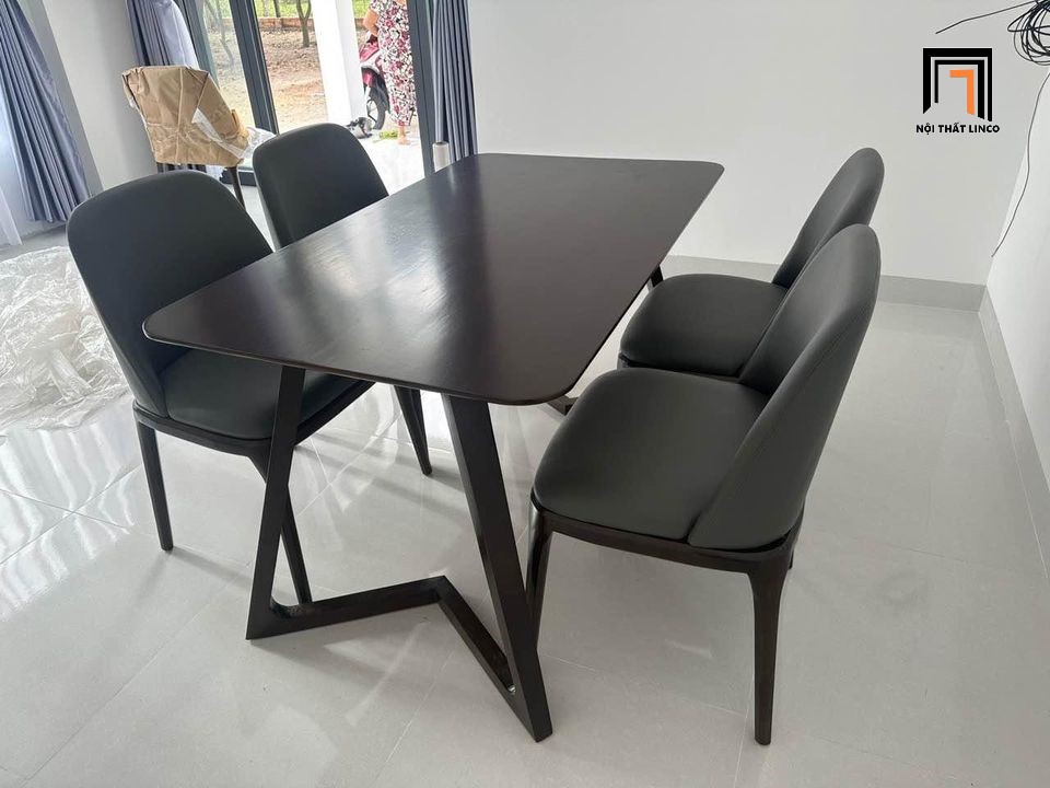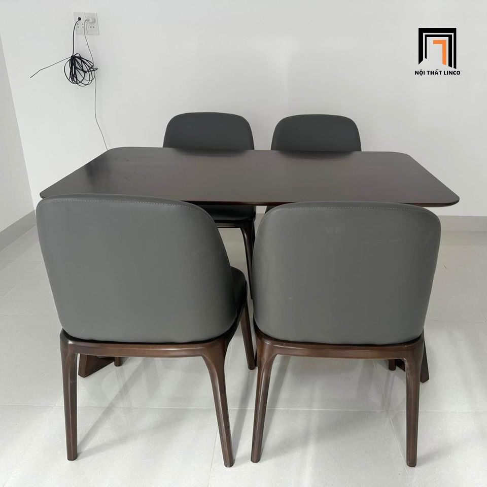 Bộ bàn ghế ăn đẹp 31-KH4-G13-B92 bọc da simili xám ghi