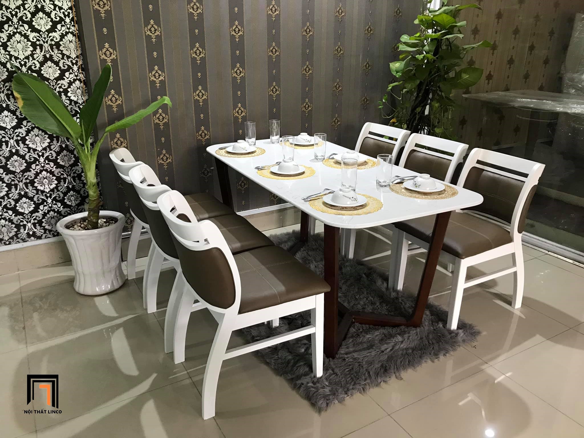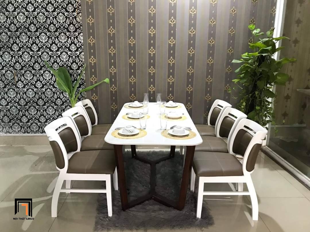 Bộ bàn ghế ăn 17-KH6-G29-B92 dài 1m6 6 ghế gỗ cao cấp