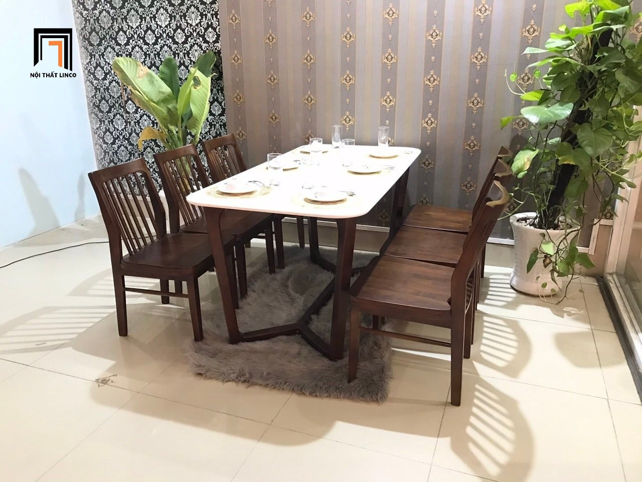 Bộ bàn ghế ăn gia đình 11-KH6-G45-B92 mặt gỗ sơn trắng