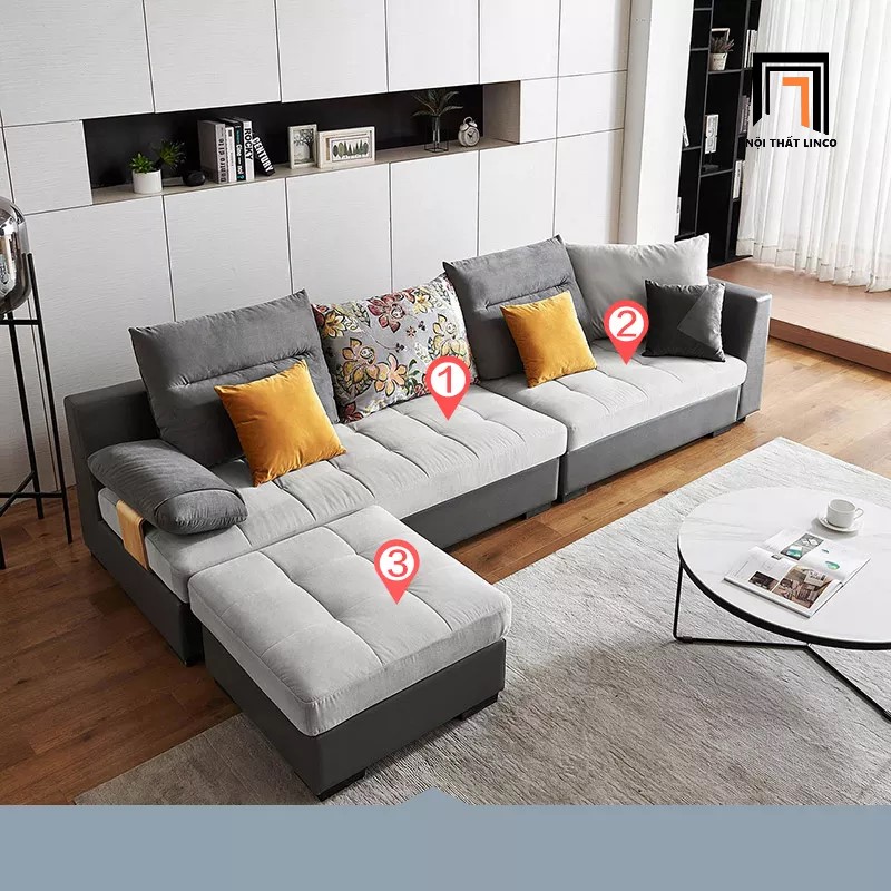 C1 Bộ ghế sofa góc chữ L GT18 Linsy 3m25 x 1m6 phối màu vải nhung
