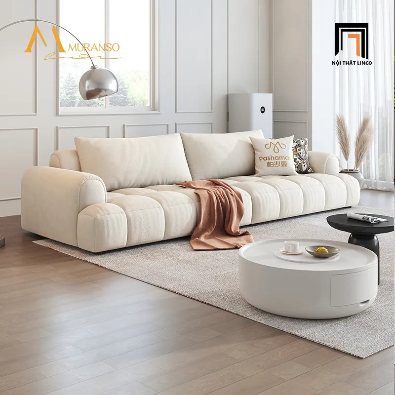 C1 Ghế sofa văng 2m6 đẹp BT270 Muranso màu trắng kem trang trí tiệm
