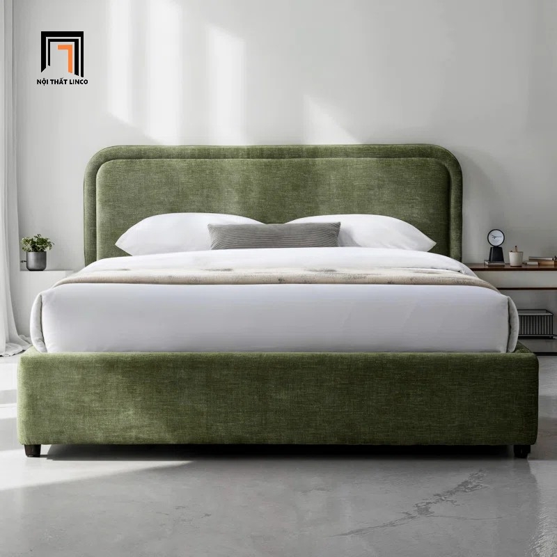 C1 Giường ngủ vải nỉ xanh lá GN133 Bixby 1m6 x 2m gia đình nhỏ