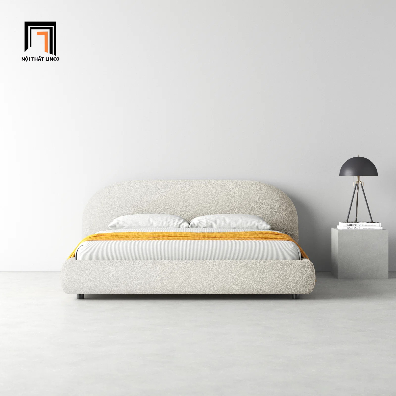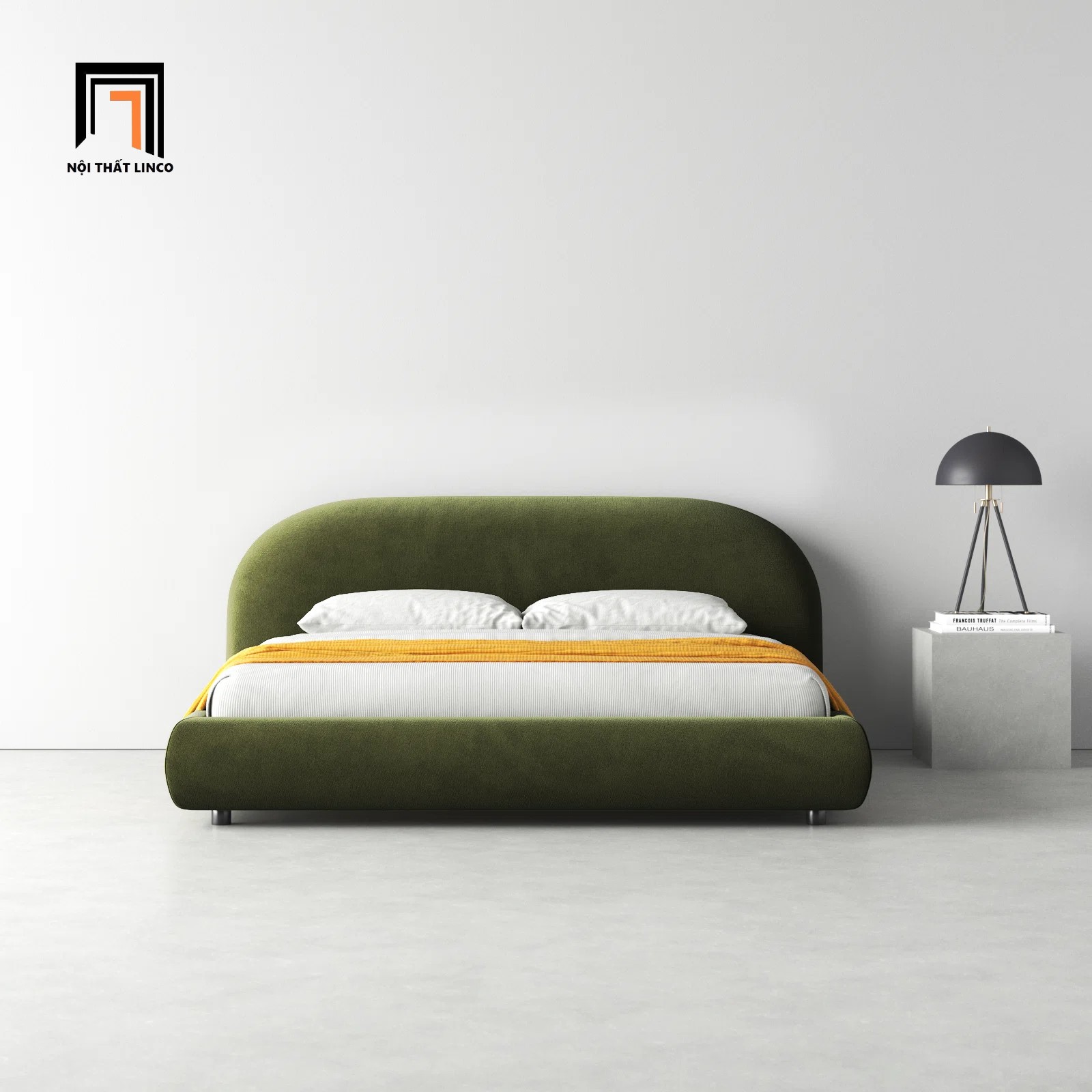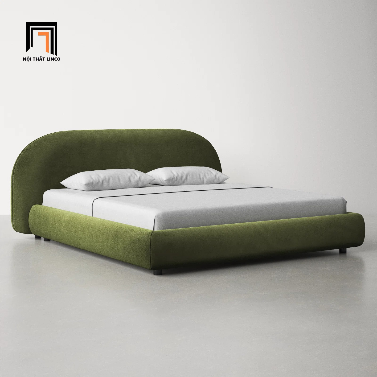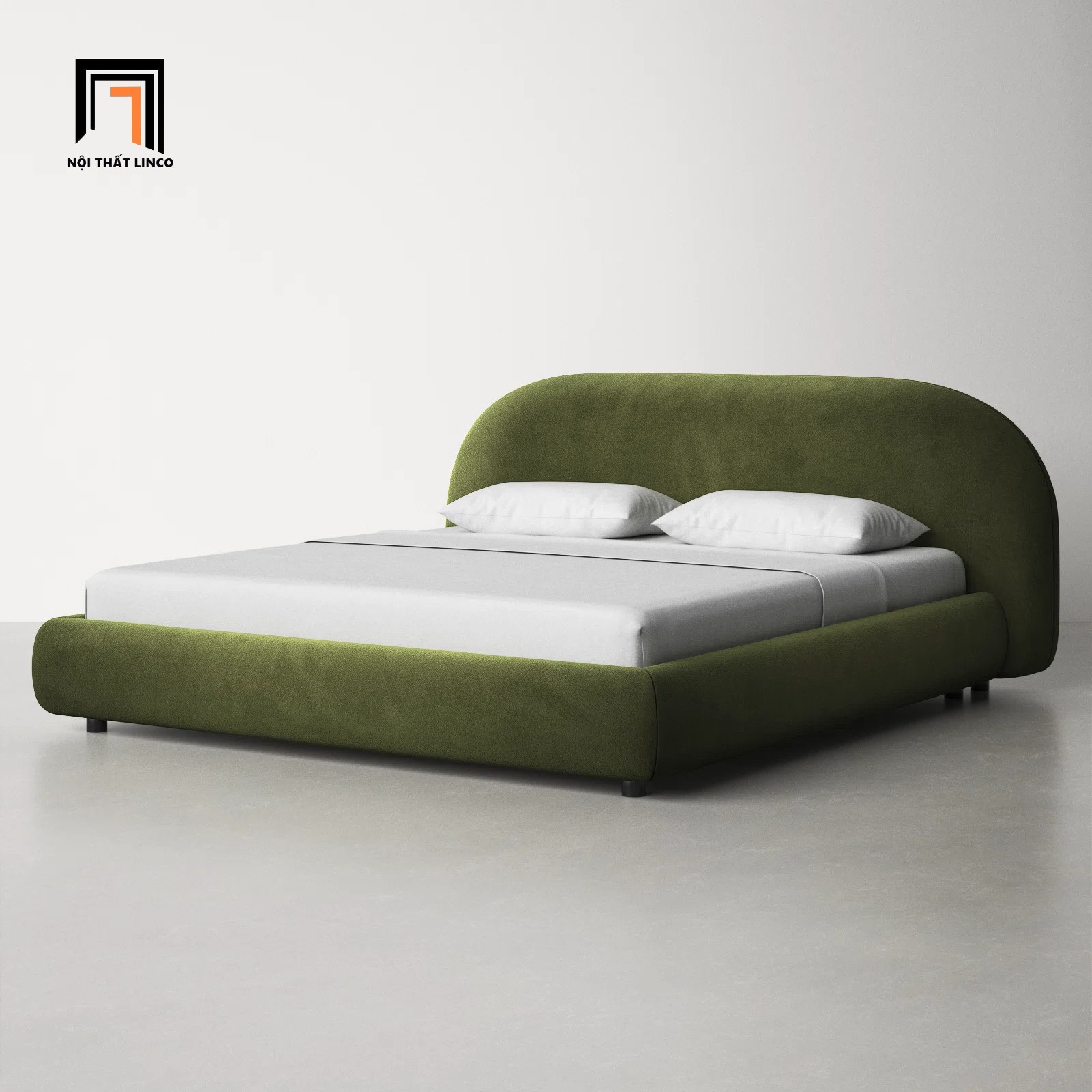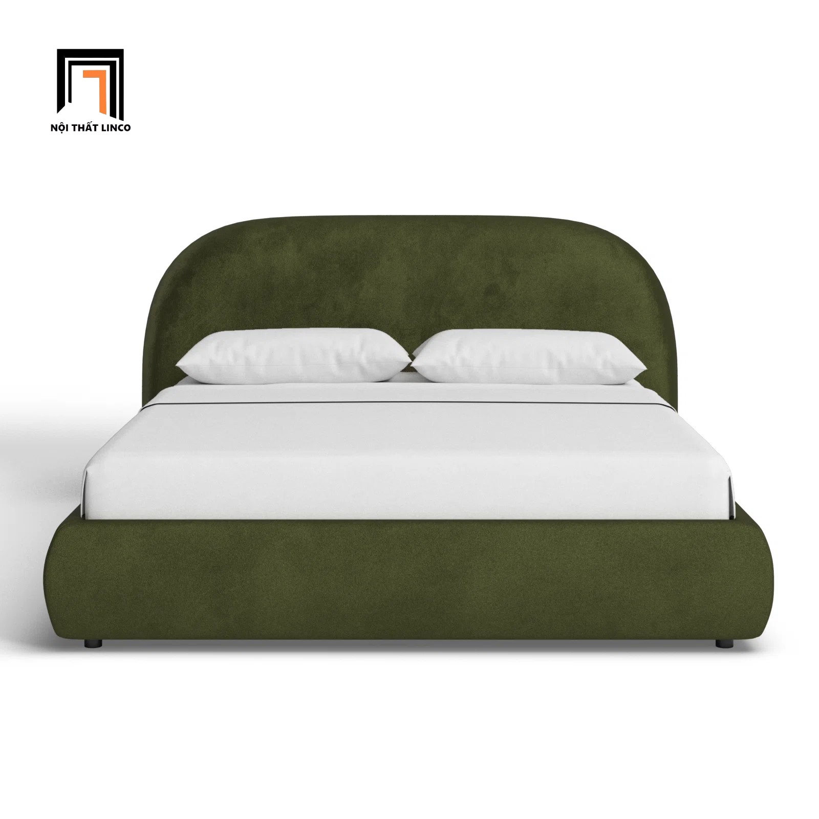 C2 Giường ngủ bo cong xinh xắn GN63 Sadarius vải nhung xanh lá