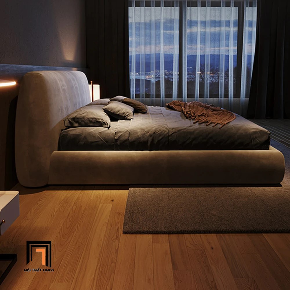 C3 Giường ngủ cho chung cư hiện đại GN47 Nadia da giả màu xám
