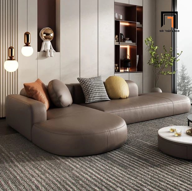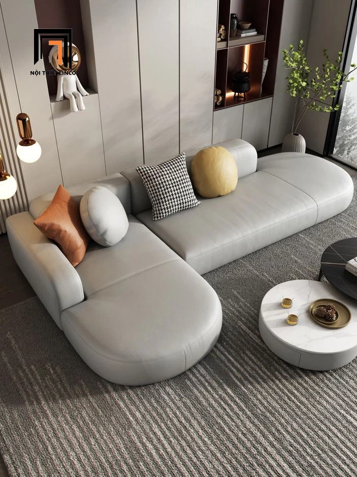 C4 Ghế sofa góc L kiểu cong GT250 Decoy 2m5 x 1m5 da xám trắng