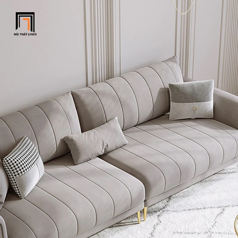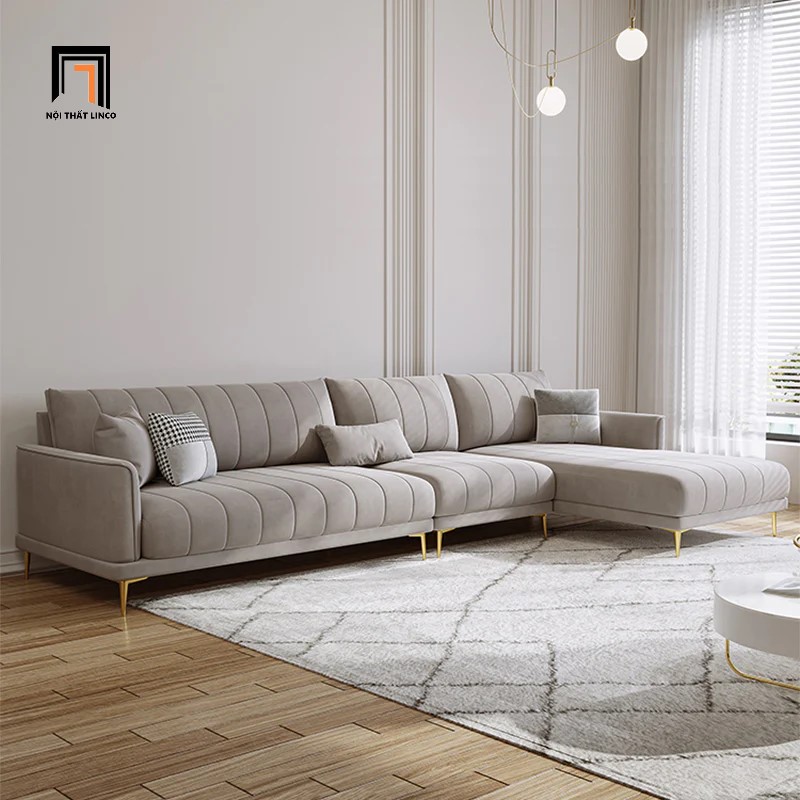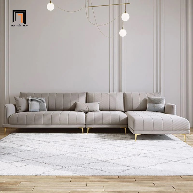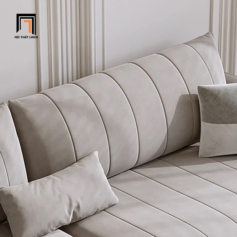 C5 Bộ sofa góc L vải nhung xám GT207 Forli 2m3 x 1m6 nệm ngồi chia ô
