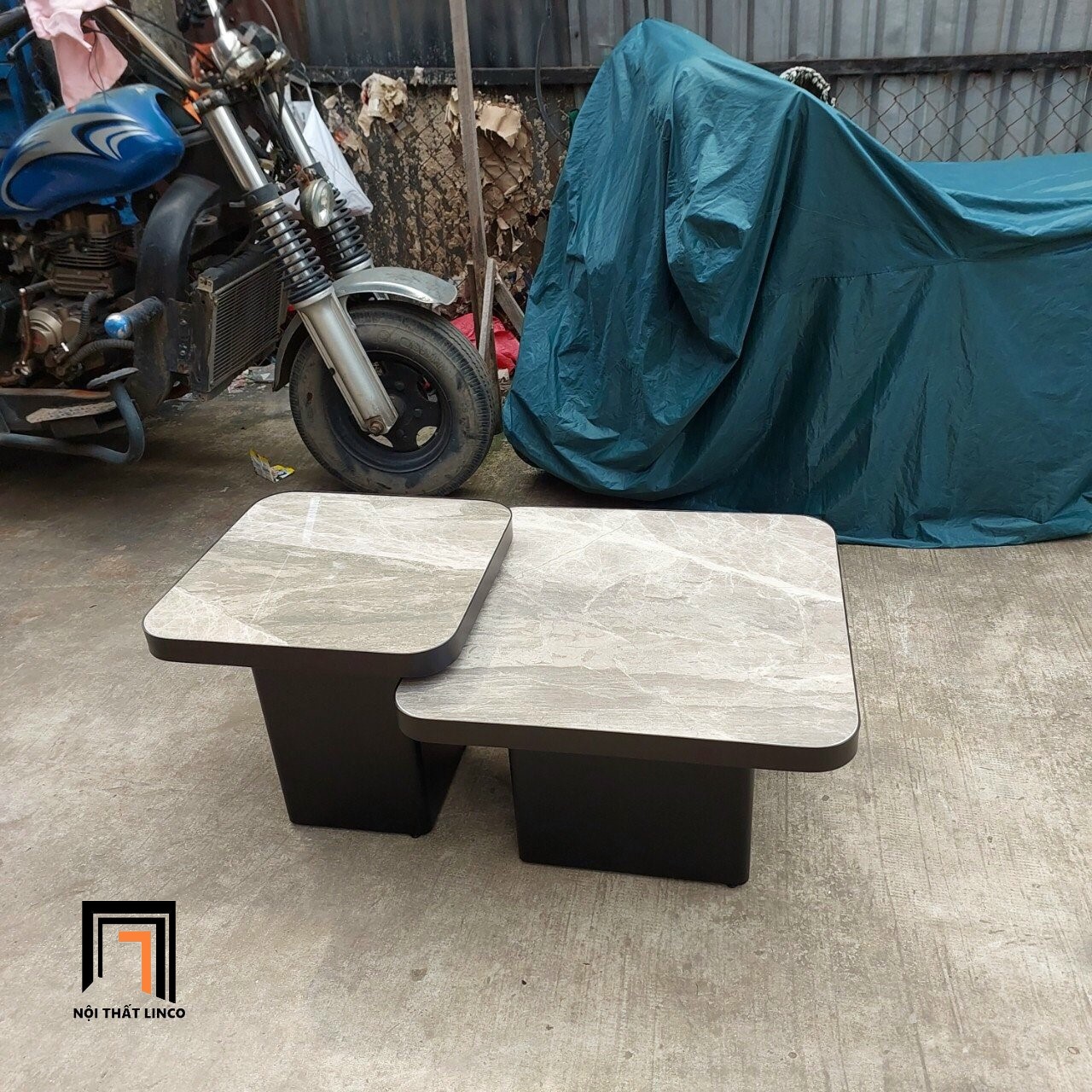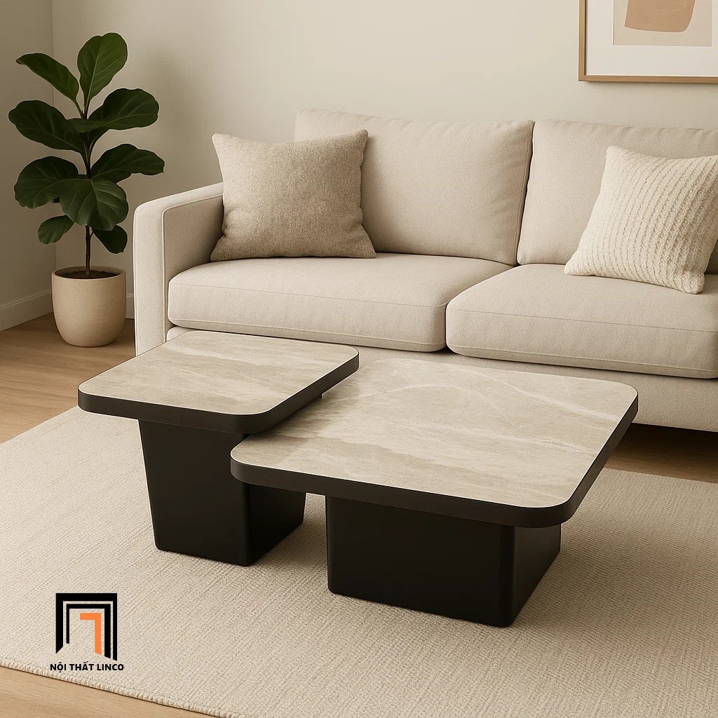 C5 Cặp 2 bàn sofa đá ceramic vuông BTPK90 Trivoli khung chân sắt