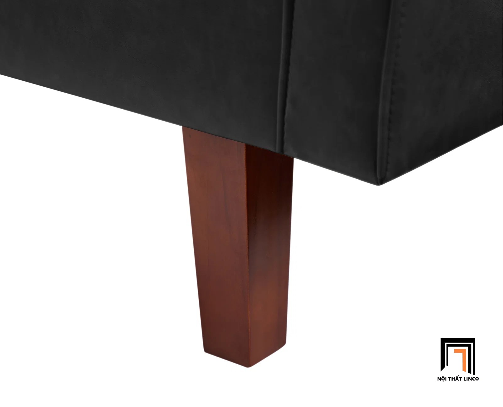 - Chất liệu: khung gỗ bạch đàn, nệm mút foam nguyên tấm (nệm mềm ngồi êm, chống xẹp lún), da công nghiệp (ngoài ra còn có vải nhung nỉ / vải bố cotton), chân gỗ cao su.