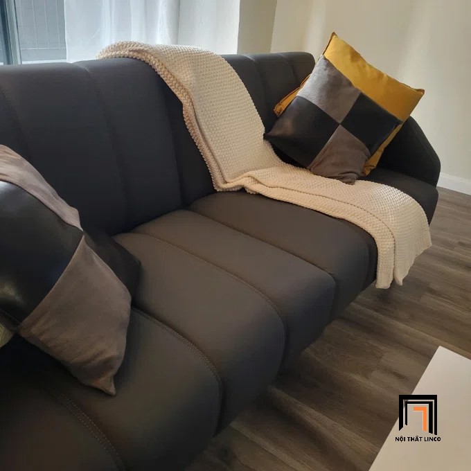 - Chất liệu: khung gỗ bạch đàn, nệm mút foam nguyên tấm (nệm mềm ngồi êm, chống xẹp lún), da công nghiệp (ngoài ra còn có vải nhung nỉ / vải bố cotton), chân gỗ cao su.