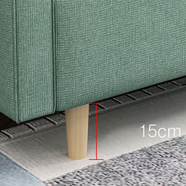 - Chất liệu: khung gỗ bạch đàn, nệm mút foam nguyên tấm (nệm mềm ngồi êm, chống xẹp lún), vải bố cotton (ngoài ra còn có vải bố cotton / da công nghiệp - simili giả da), chân gỗ cao su.