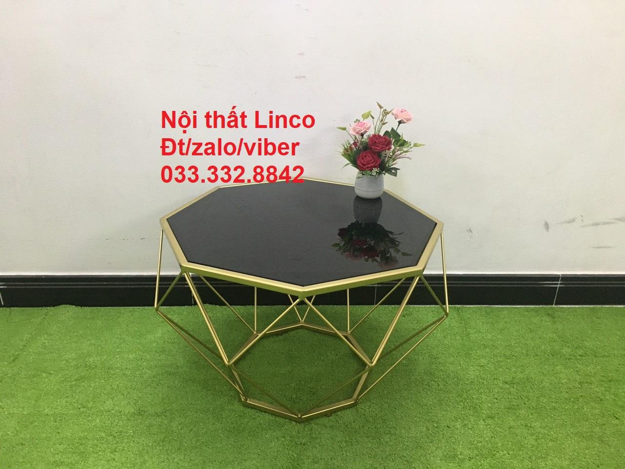 D1 Bàn sofa phòng khách lục giác 70 mặt kính đen khung vàng
