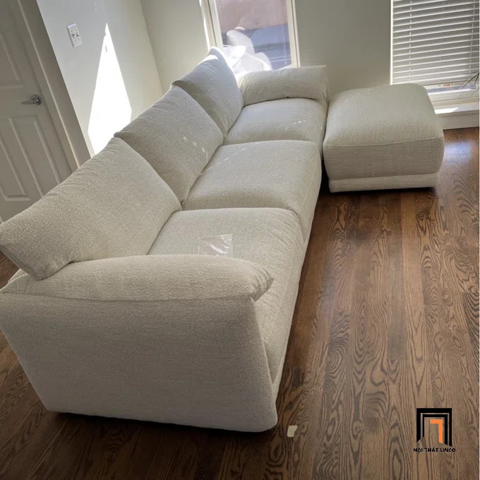 D1 Bộ ghế sofa băng xám trắng dài 2m3 BT61 Bodhill kèm đôn vuông