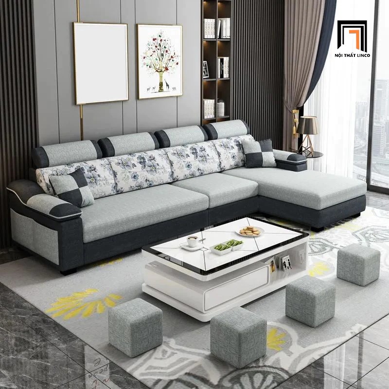 D1 Ghế sofa góc L phối màu đẹp GT166 Beaver 3m x 1m6 cho gia đình