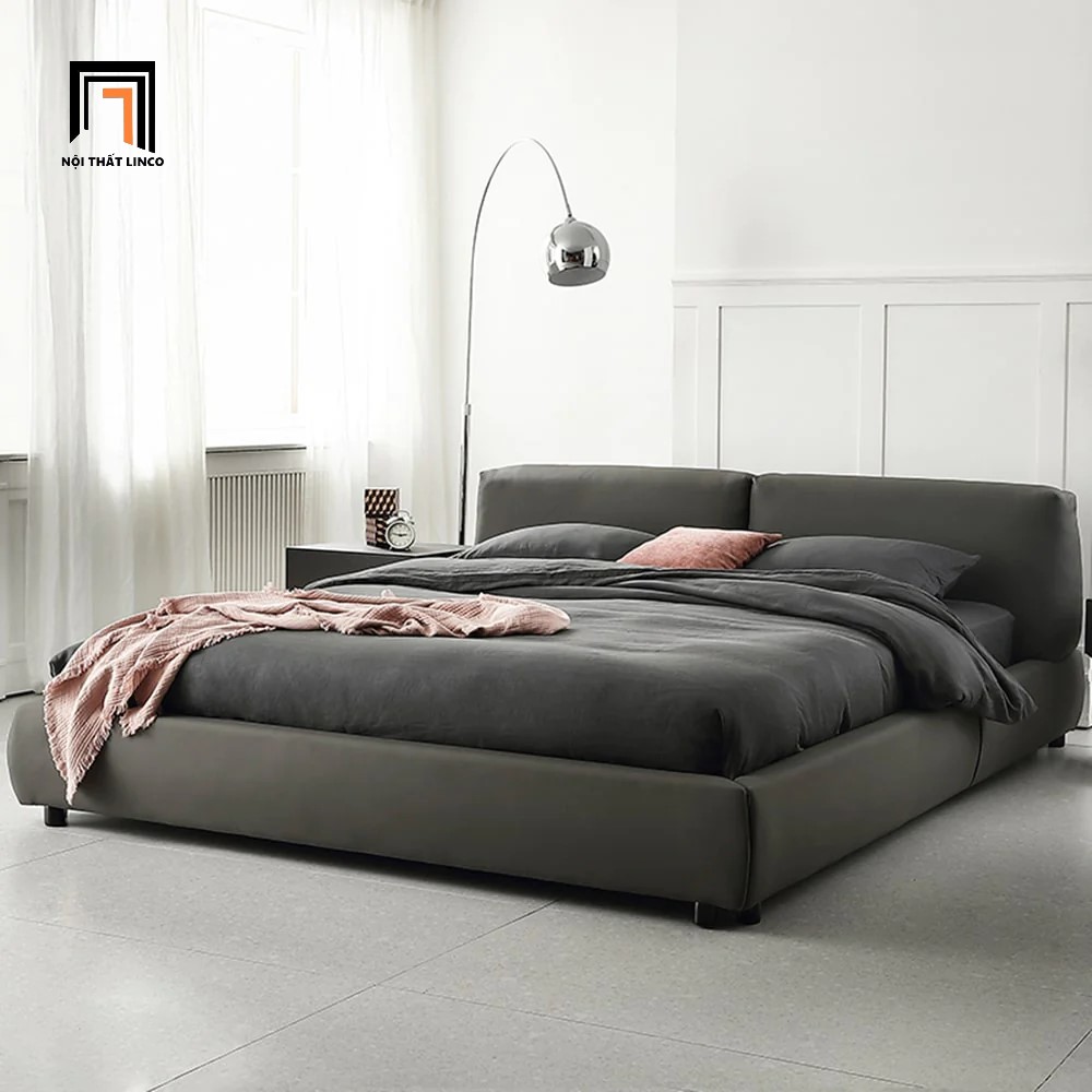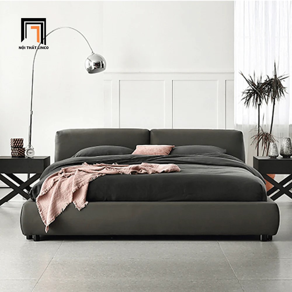 D1 Giường ngủ bọc da xám đen GN40 Harley 1m6 x 2m hiện đại