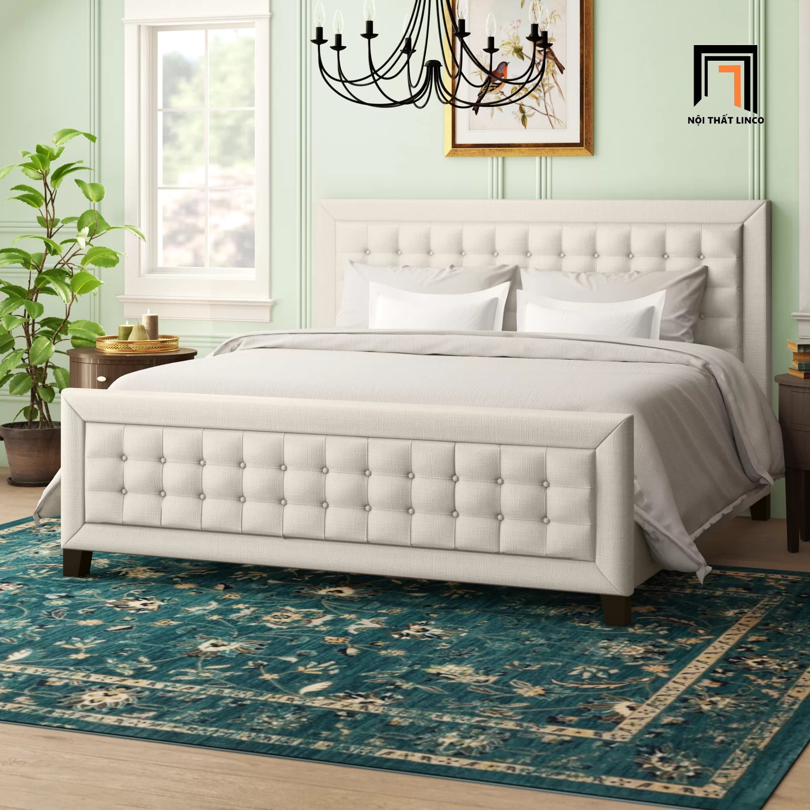 D1 Giường ngủ bọc nệm GN25 Kaster giật nút sang trọng màu kem