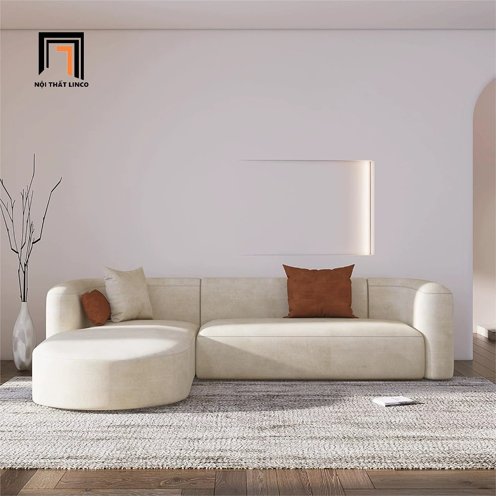 D2 Sofa góc L cong GT262 Schoer 2m2 x 1m6 bọc da đẹp màu nâu