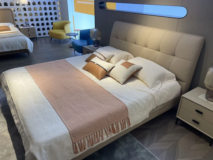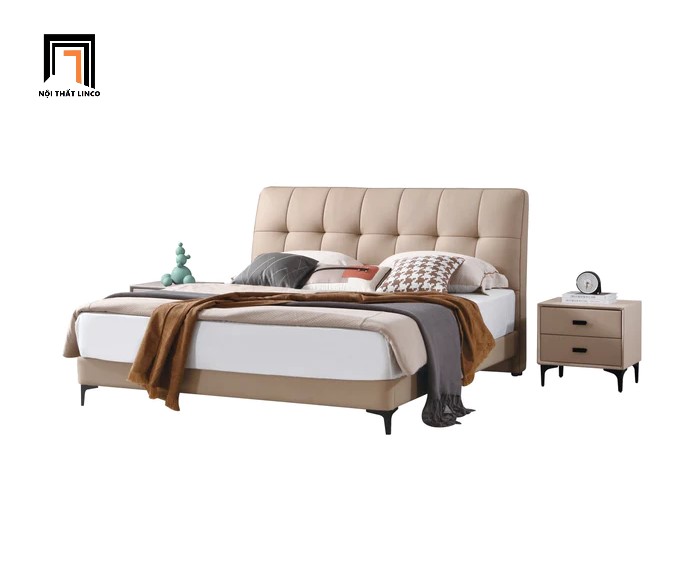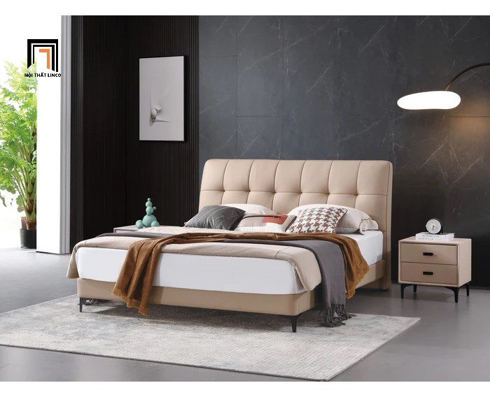 D3 Giường ngủ vải nỉ mềm màu be GN70 Weddle 1m6 x 2m giá rẻ