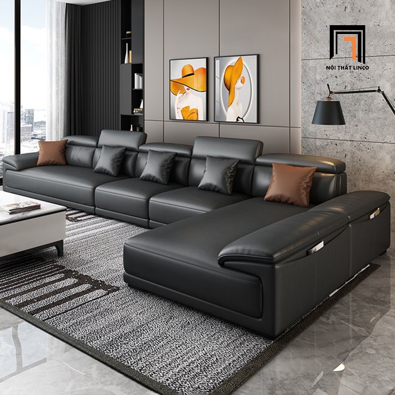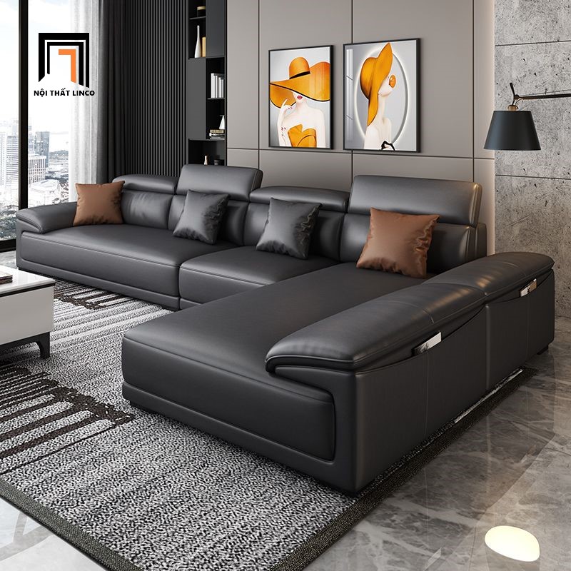 D3 Sofa góc bọc da màu đen GT176 Souris 2m6 x 1m7 gật gù sang trọng