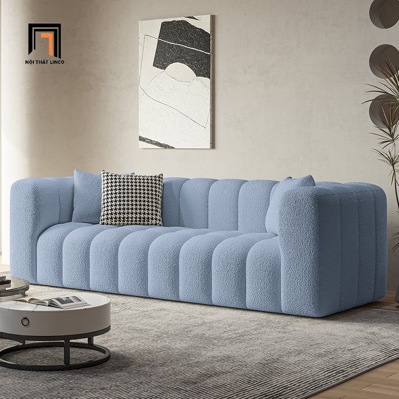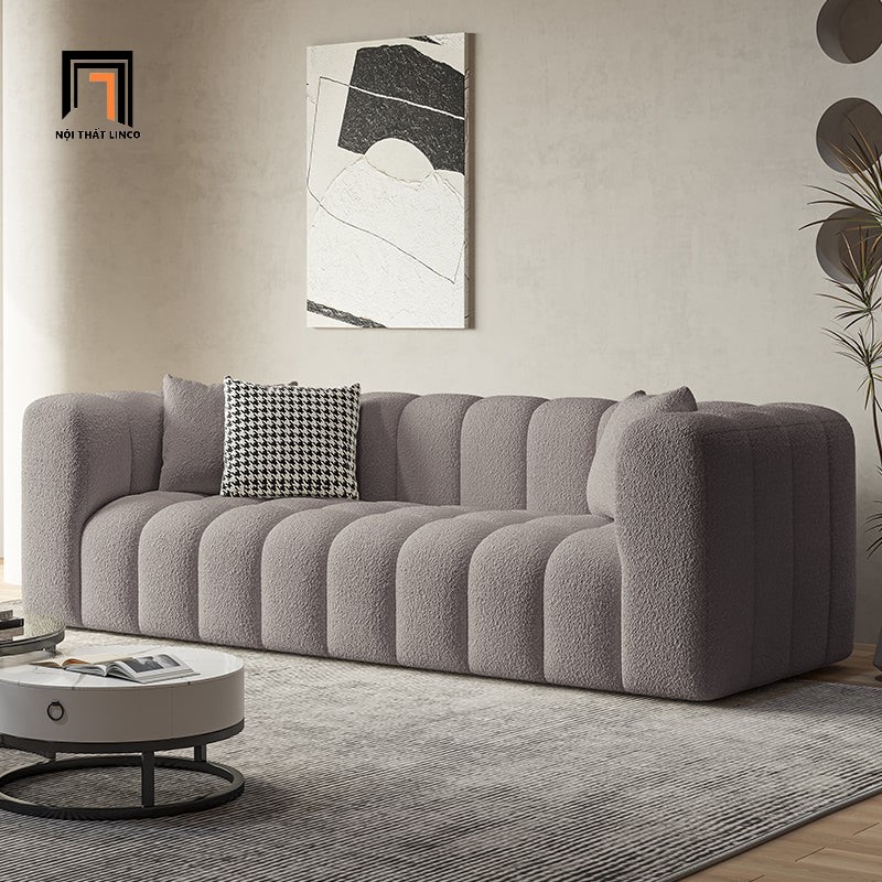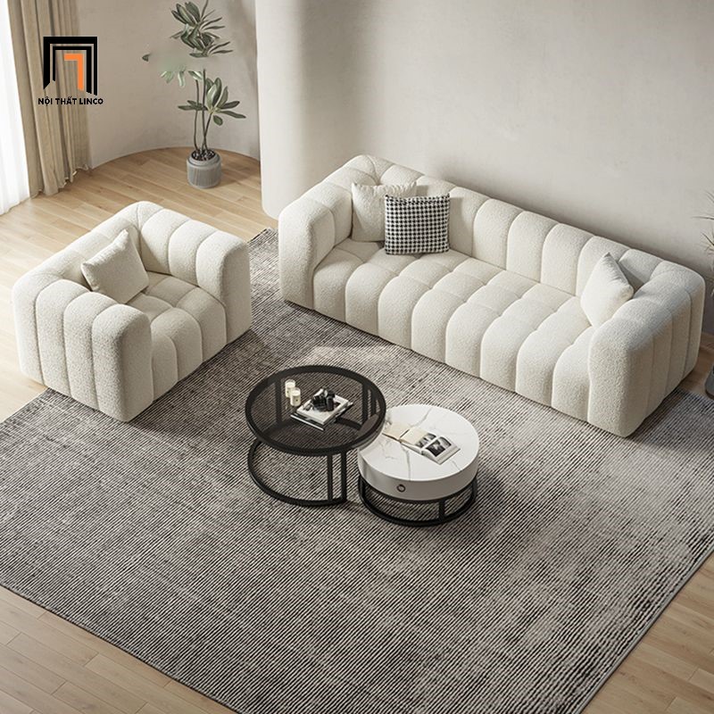 E1 Bộ ghế sofa vải lông cừu màu trắng KT70 Kaisei trang trí xinh xắn