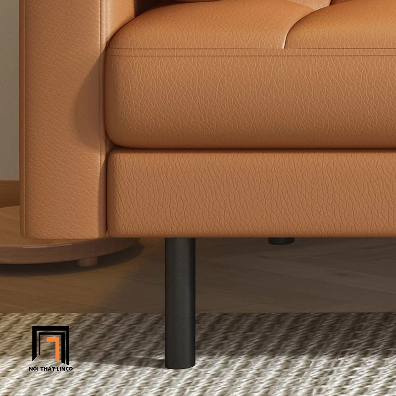 - Chất liệu: khung gỗ bạch đàn, nệm mút foam nguyên tấm (nệm mềm ngồi êm, chống xẹp lún), da công nghiệp (ngoài ra còn có vải nhung / vải nỉ bố), chân gỗ cao su.
