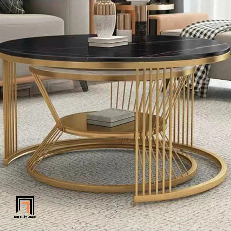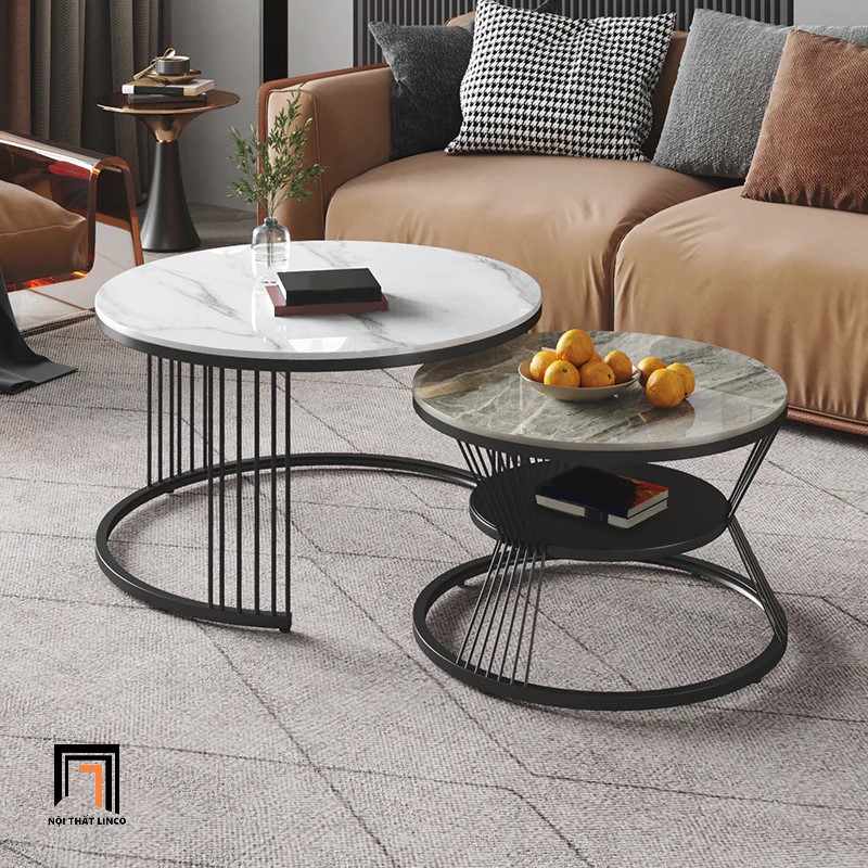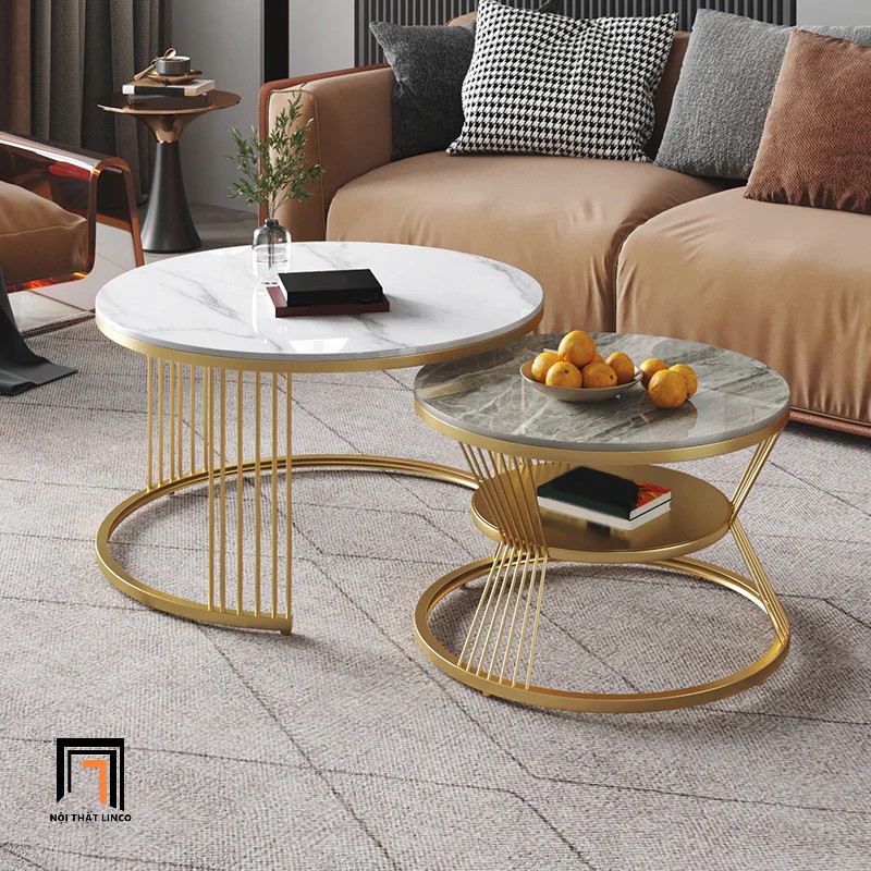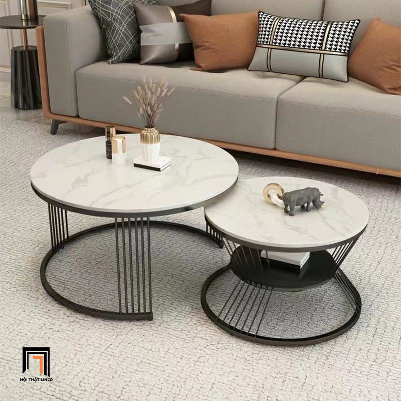 E3 Cặp bàn sofa mặt đá tròn BSF34 Rolate khung chân xòe xinh xắn