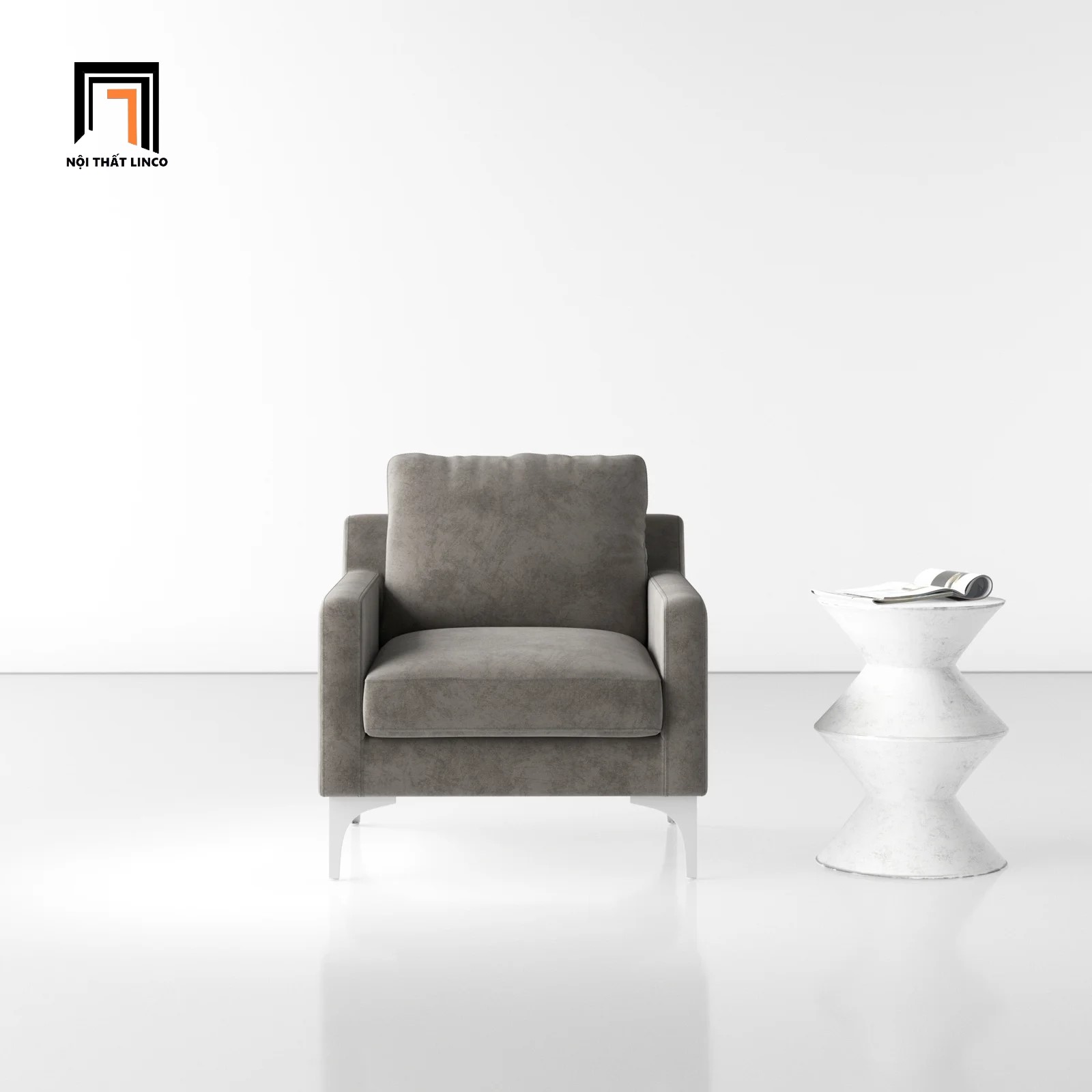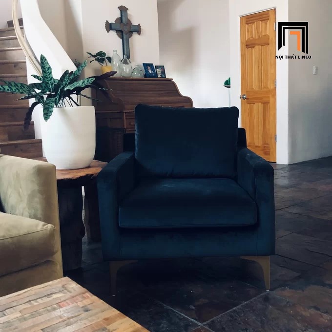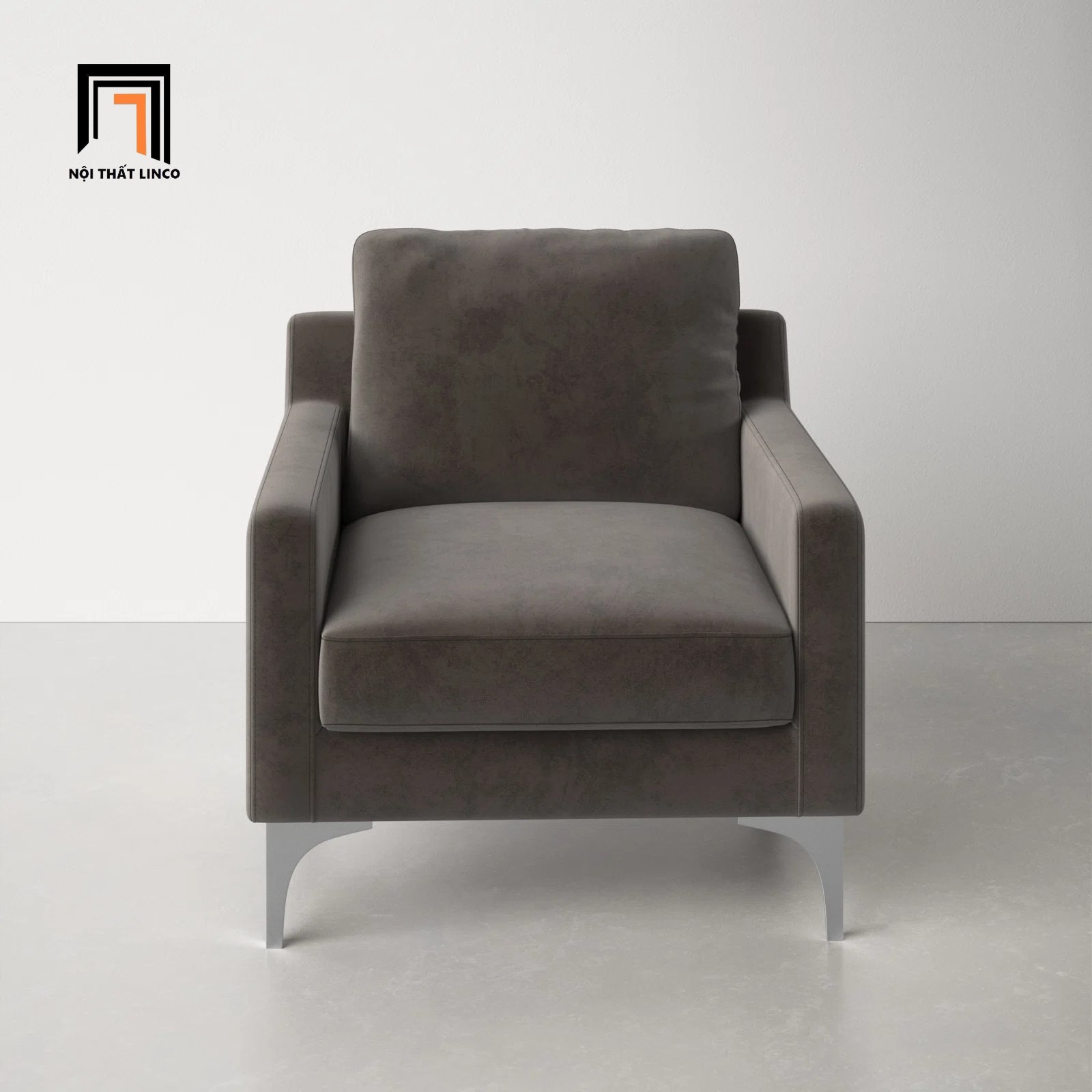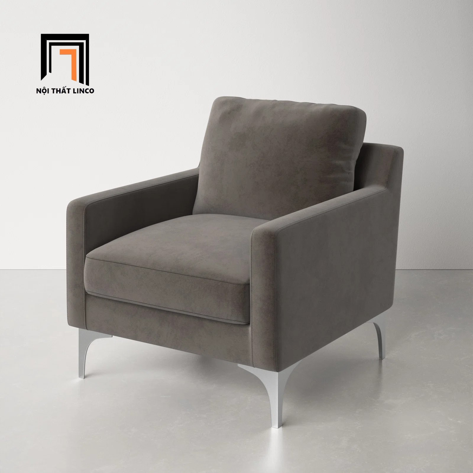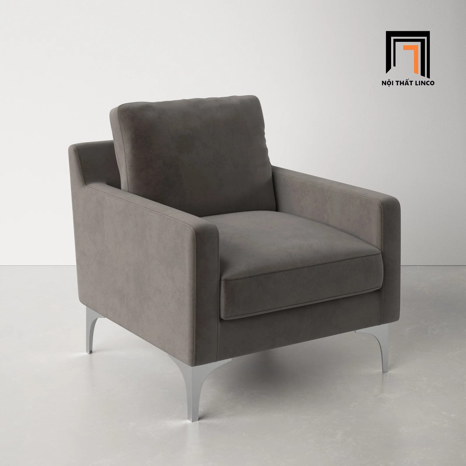 E3 Ghế sofa đơn vải nhung xám đen DT6 Jones cho phòng khách