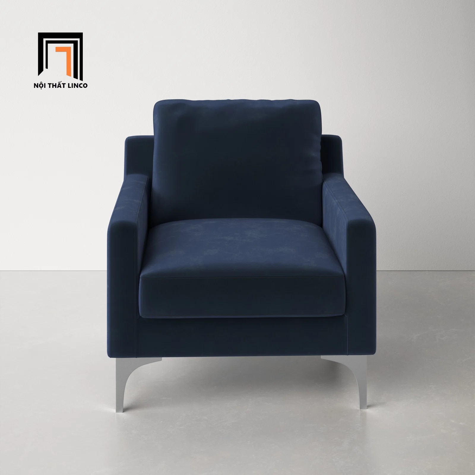 - Chất liệu: khung gỗ bạch đàn, nệm mút foam nguyên tấm (nệm mềm ngồi êm, chống xẹp lún), vải nhung nỉ (ngoài ra còn có vải bố cotton/ da công nghiệp - simili giả da), chân inox sơn tĩnh điện