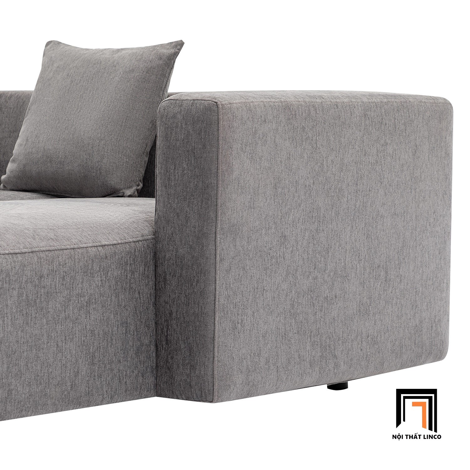 Chất liệu: khung gỗ bạch đàn, nệm mút foam nguyên tấm (nệm mềm ngồi êm, chống xẹp lún), vải bố cotton mềm (ngoài ra còn có vải nhung / da công nghiệp), chân gỗ cao su.