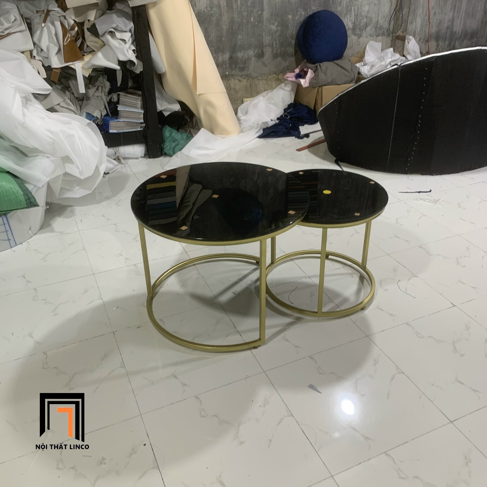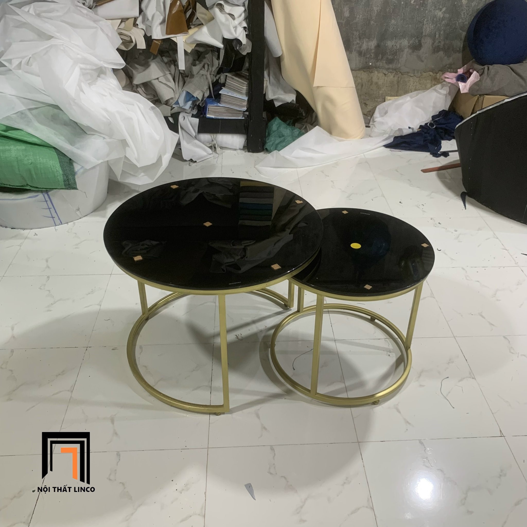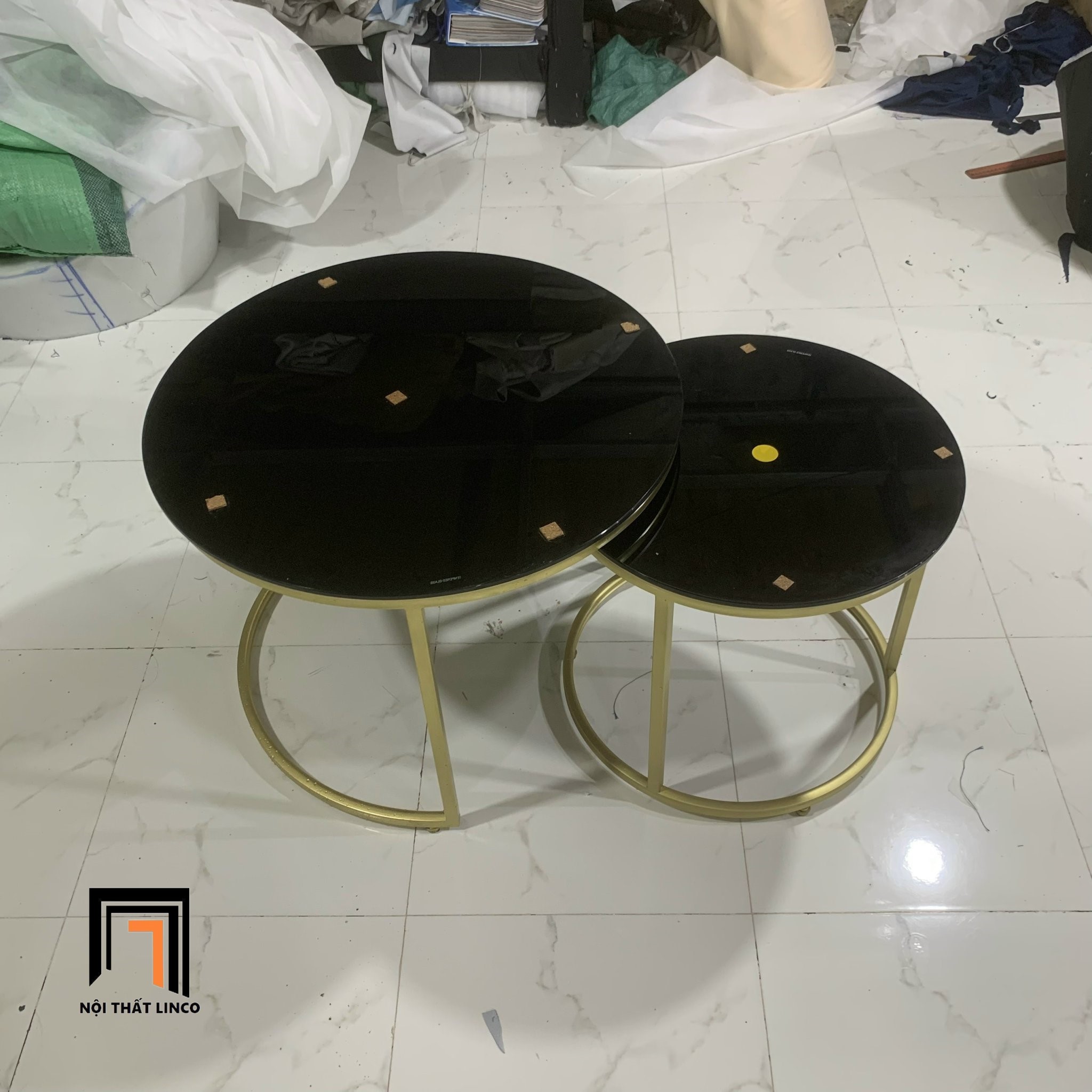 F1 Cặp bàn trà mặt kính đen BTPK8 Funda 60 vs 45 phòng khách nhỏ