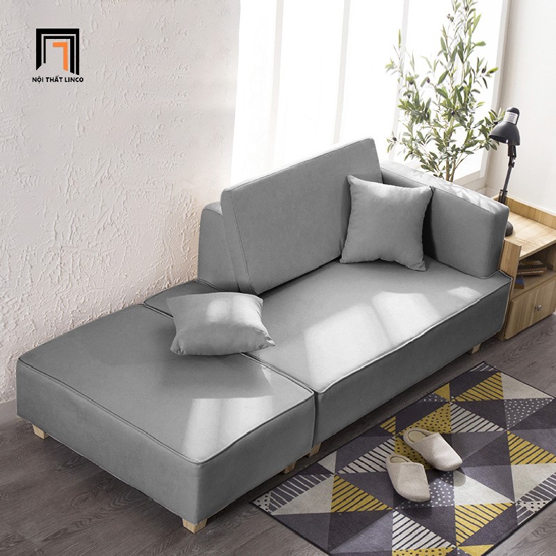 - Chất liệu: khung gỗ bạch đàn, nệm mút foam nguyên tấm (nệm mềm ngồi êm, chống xẹp lún), vải nỉ bố (ngoài ra còn có vải nhung / da công nghiệp), chân gỗ cao su.