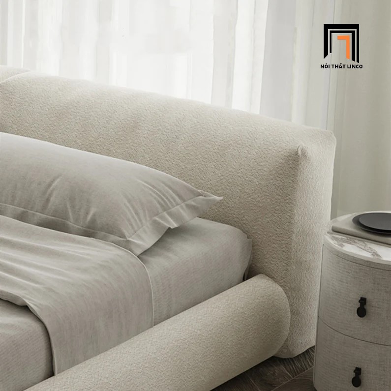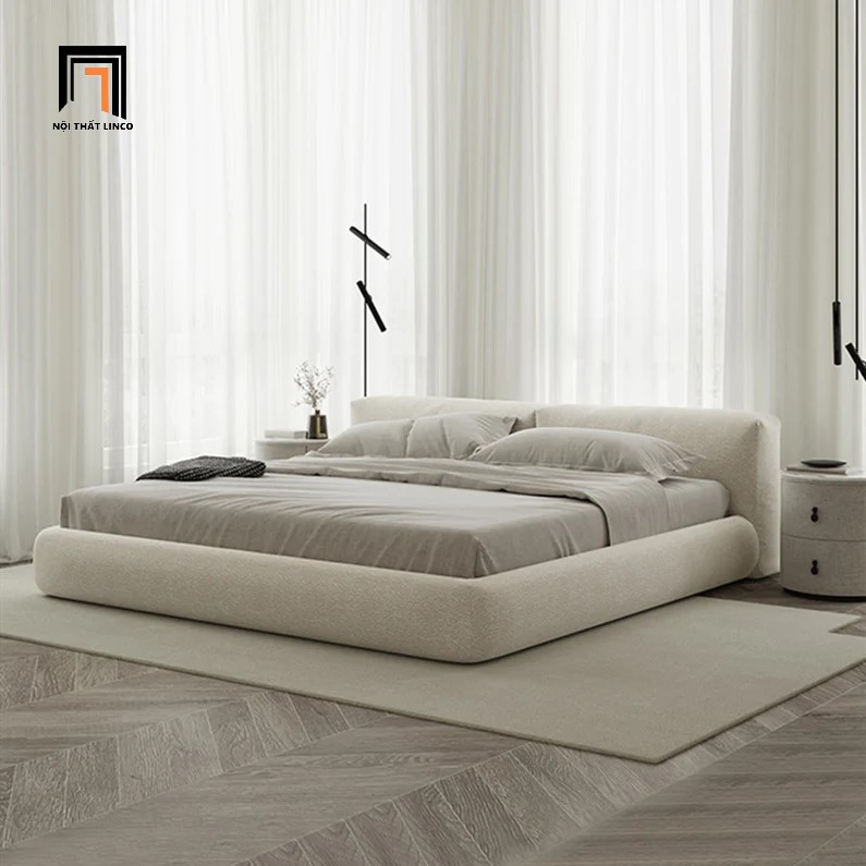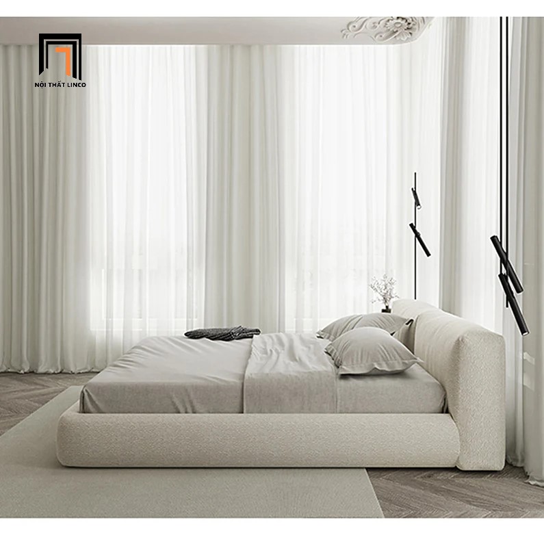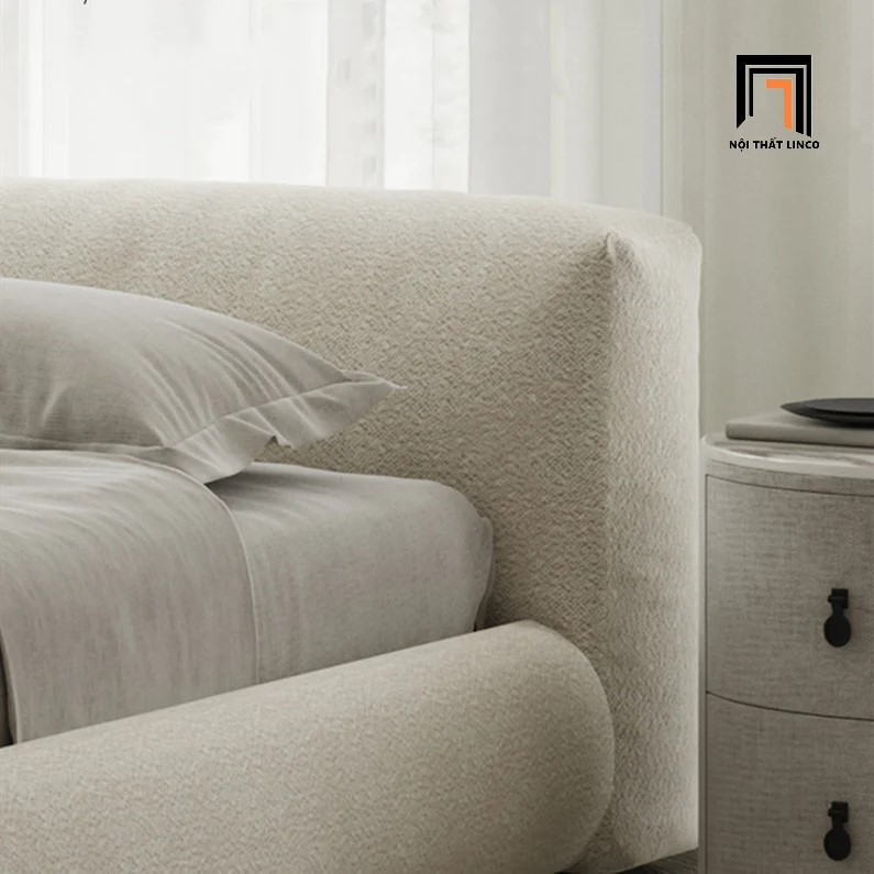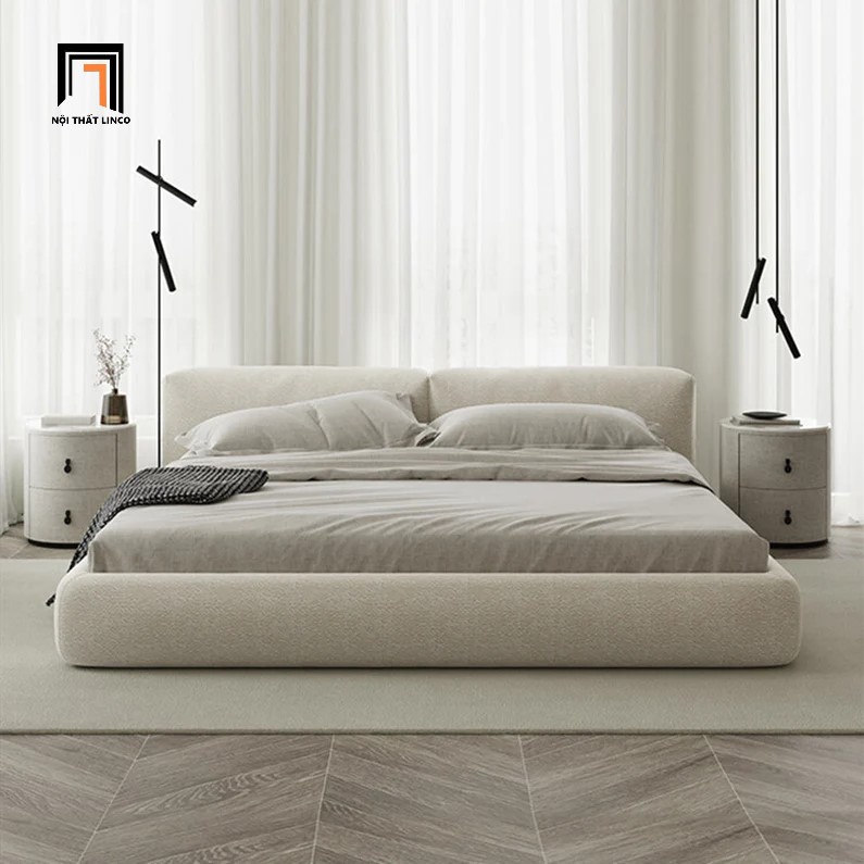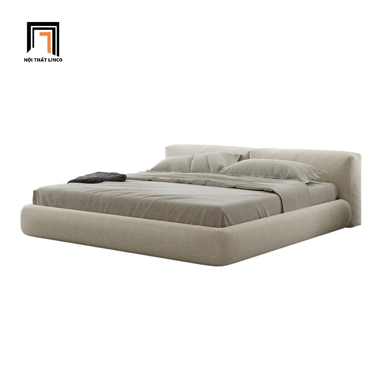 G1 Giường ngủ bọc nỉ xám trắng GN48 Amos 1m6 x 2m cho gia đình
